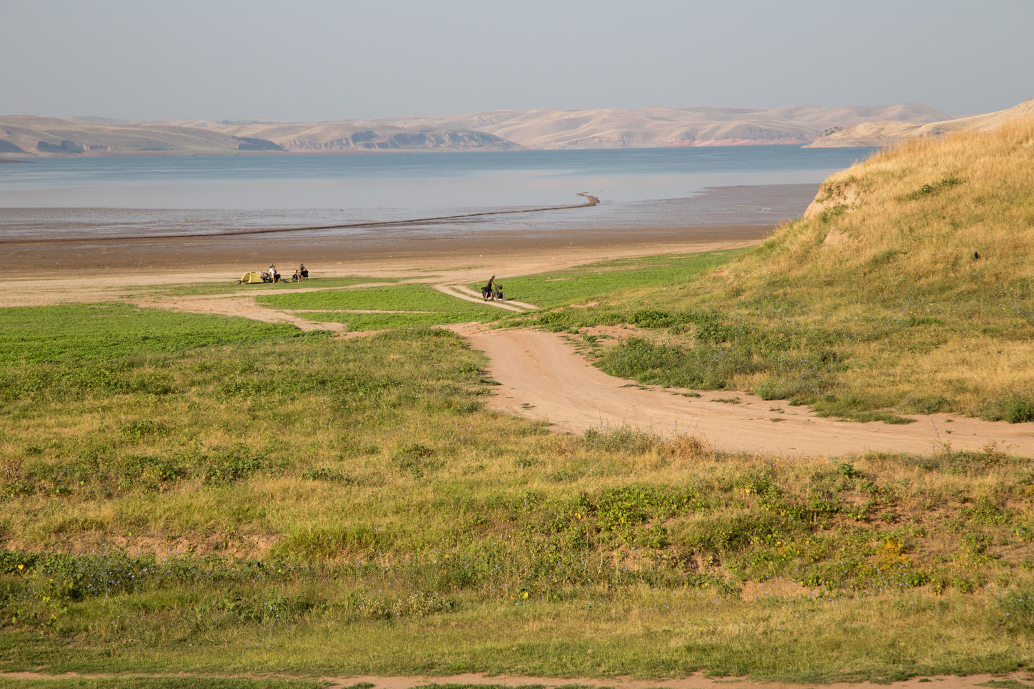 In Massy we spot a restaurant with a nice garden. We push our bikes in and are given a nice room with carpets, pads and two low tables. The communication is bad, but we try to let them know we want to spend the night here. We are immediately invited to join some guys in another room who have great bbq meat, bread and melon. After some clean-up we spent the day in “our” room, charge our electronics and catch up on internet. We have a sim card that works. Our bikes are unloaded, all panniers in the room. Image our surprise when after dinner, just when it gets dark we are told the place is closing and we have to move. We protest, but the language barrier makes it impossible to make our point, plus it seems they really don’t care that it is dark now and we can’t really ride down the road.