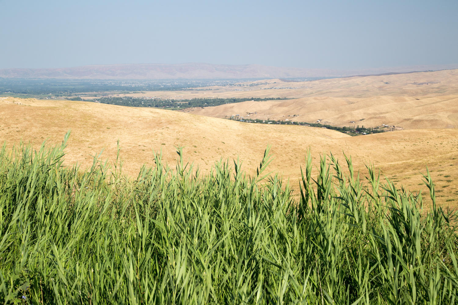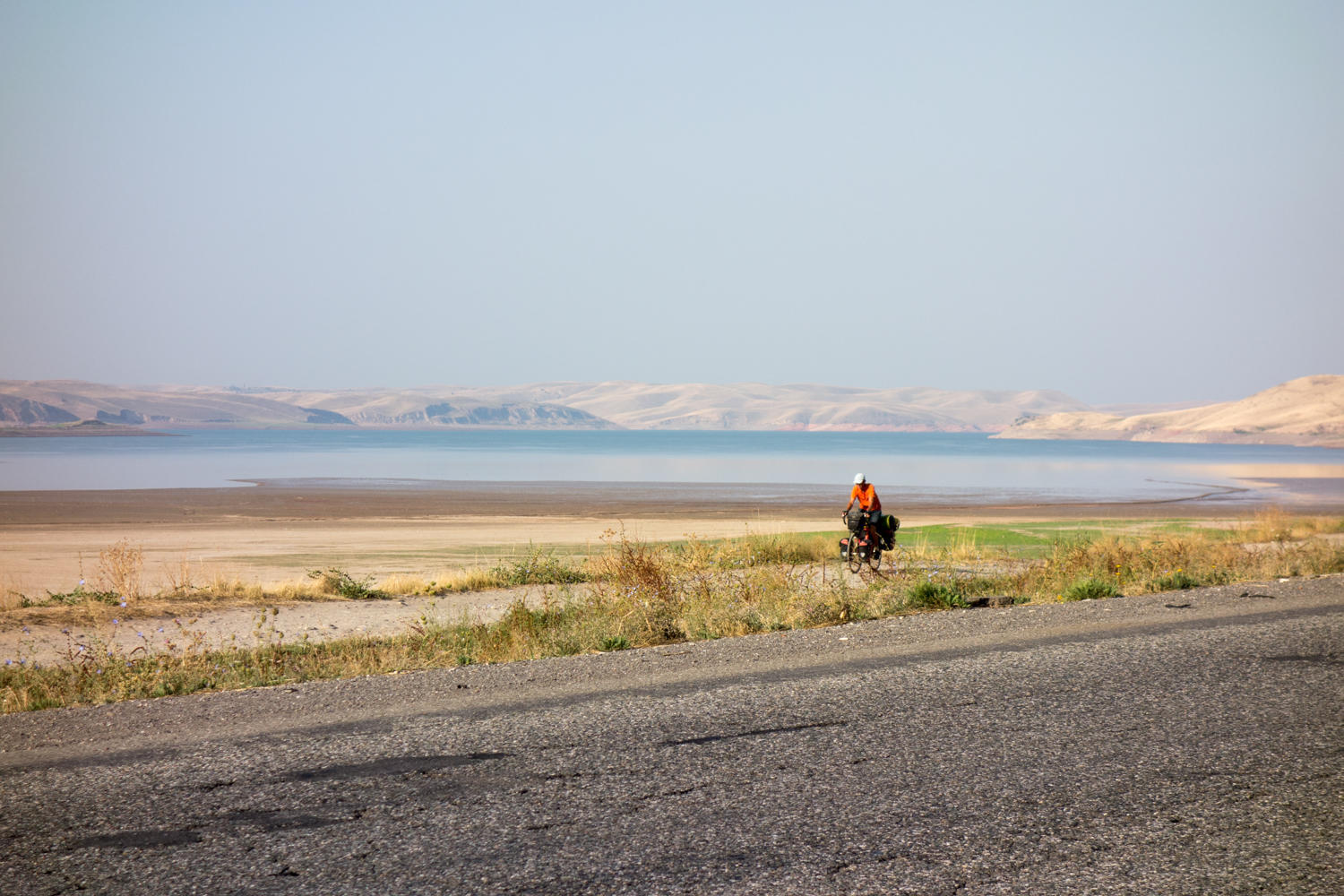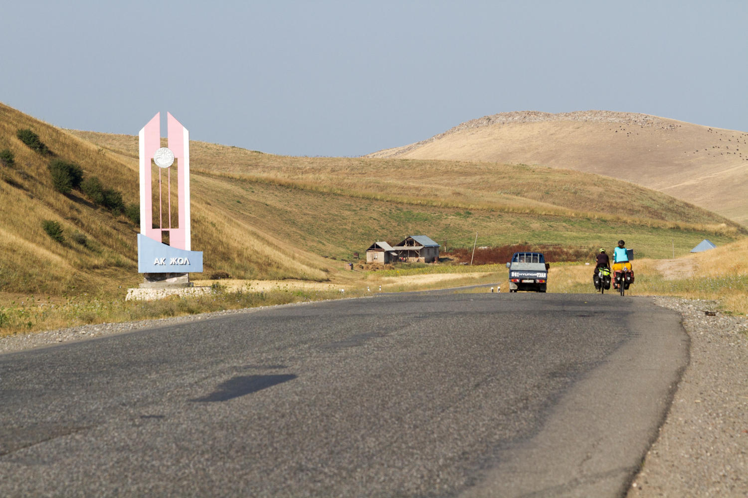The Fergana Valley is a long fertile agricultural valley that stretches across Uzbekistan and Kyrgyzstan. It is not very scenic though, and the traffic on this fairly narrow road is getting on our nerves. On top of that it is hot, about 40 degrees centigrade.