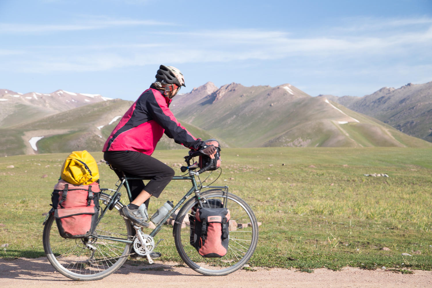 When we decided to get off the main road and take the “Toluk shortcut” we thought it would save us some time. What it did was get us off the busy main road between Osh and Bishkek. It did save us about 100km cycling as well, but we could have certainly done the main road a lot quicker than our “shortcut”. The reward though was in seeing the Kyrgyzstan high country with its rolling green hills, the snow capped mountains, the yurts and the guys on horseback with their traditional head gear. As Jo said of a favorite quote, “Travelling lets you see a thousand lives you might have lived”.