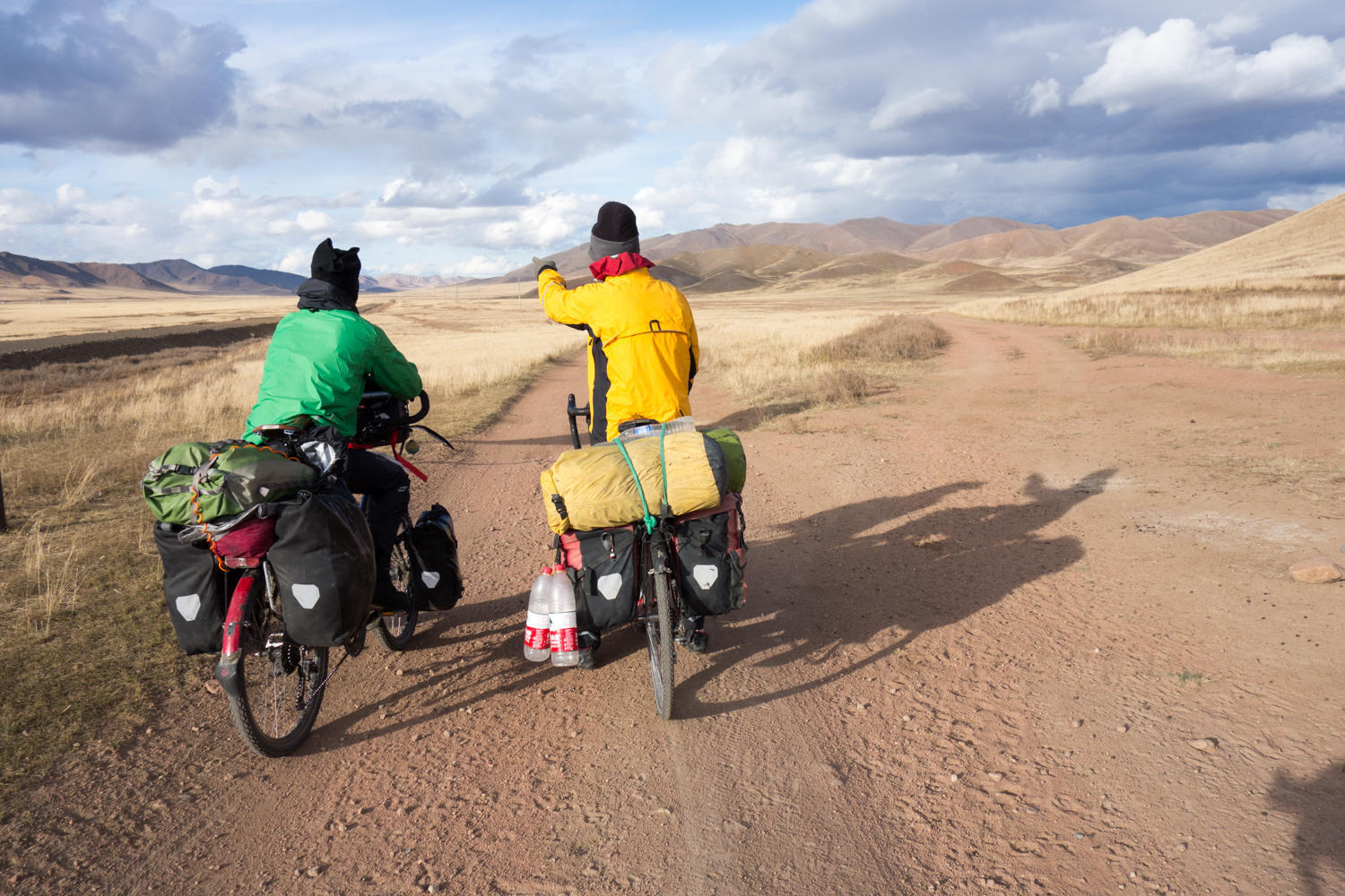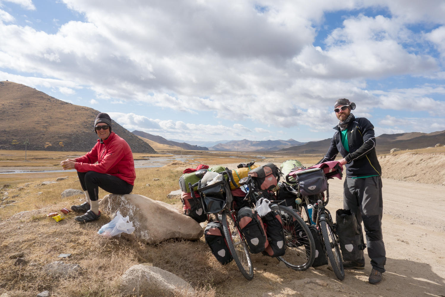 Up on the pass it is cold and windy. We keep going even though we are hungry by now. A couple of kilometers down we do have a lunch. Pierre is riding with us today; he has come on bicycle all the way from his home in Lyon. We first met him in Karakol when he was riding with a French couple. His plan is to get to Ulaanbaatar and take the trans-Siberia express back to Europe, then ride home. He is a journalist and is writing articles about this trip to make a living. Pierre is faster than us though so we’ll see how long we will stick together.