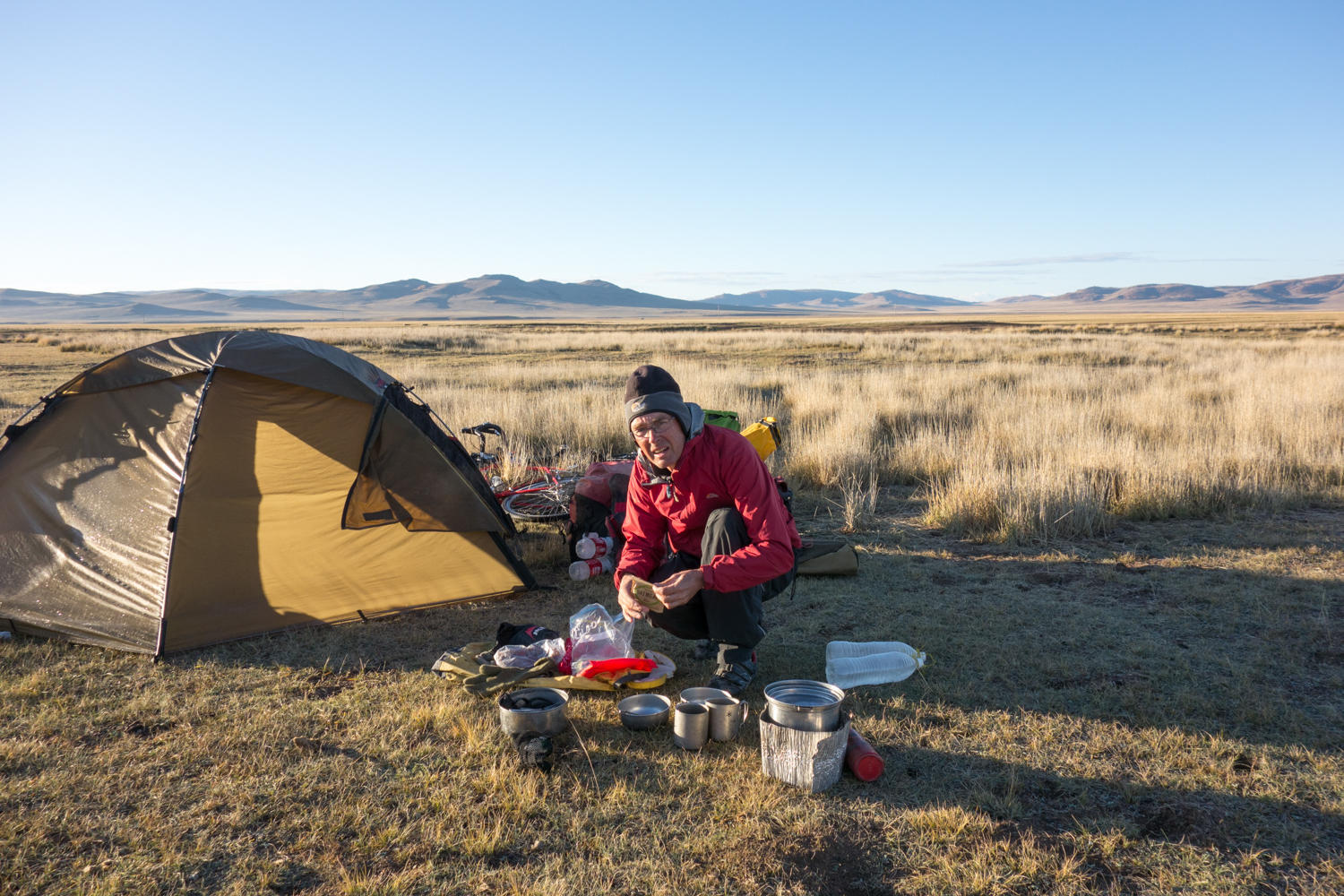 Weather forecasts are often wrong though and we do not want to take a ride now just because of a forecast. So we decide to ride on tomorrow, see what the weather does and take a ride to Tsetsengel if that becomes the sensible thing to do.