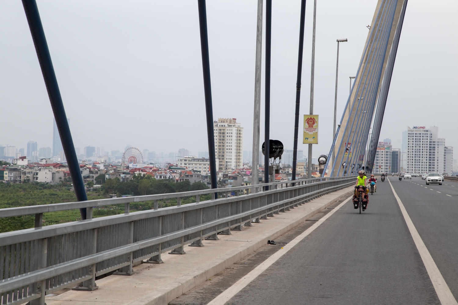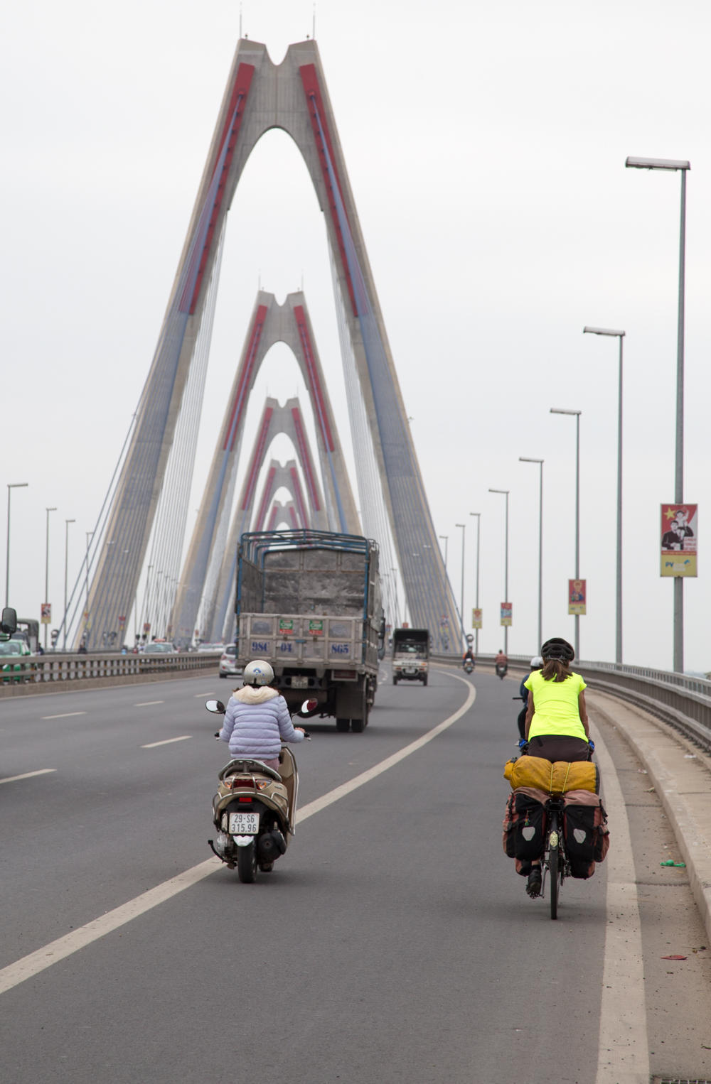 After the break we cross the Red River, pass by the airport and pretty much follow Highway 3 all the way to Thai Nguyen. Traffic is fairly heavy, but most of the road is wide enough to give us a nice shoulder. Also there are many scooters so traffic is used to moving over to pass two-wheelers. The honking gets a bit annoying, especially some of the little trucks that seem to have excessively loud horns.