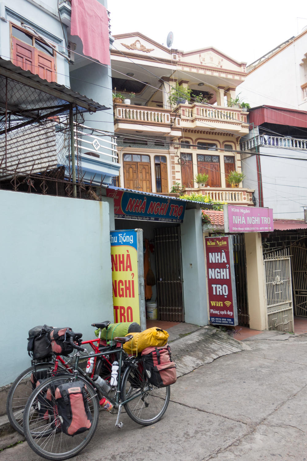 There seem to be guesthouses and hotels everywhere, and after passing through the center of town we take a room at the first one we check. It is basic, but cheap and clean. Just in time before the rain starts.
