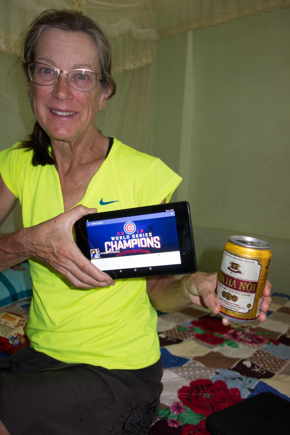 "The score is 1-0" Patrick says when first checking the link, Cubs favor. We are climbing many hills today. Throughout the day Patrick checks the score...5-3, we climb a hill, 6-3, we climb a hill, tied 6-6, we climb a hill, game delay because of rain, we climb a hill....we reach Na Phac and find a Guesthouse, checking in and see "Holy Cow," the Cubs won the 2016 world series! After 108 years the goat curse is broken in 10 innings and 8 runs.
