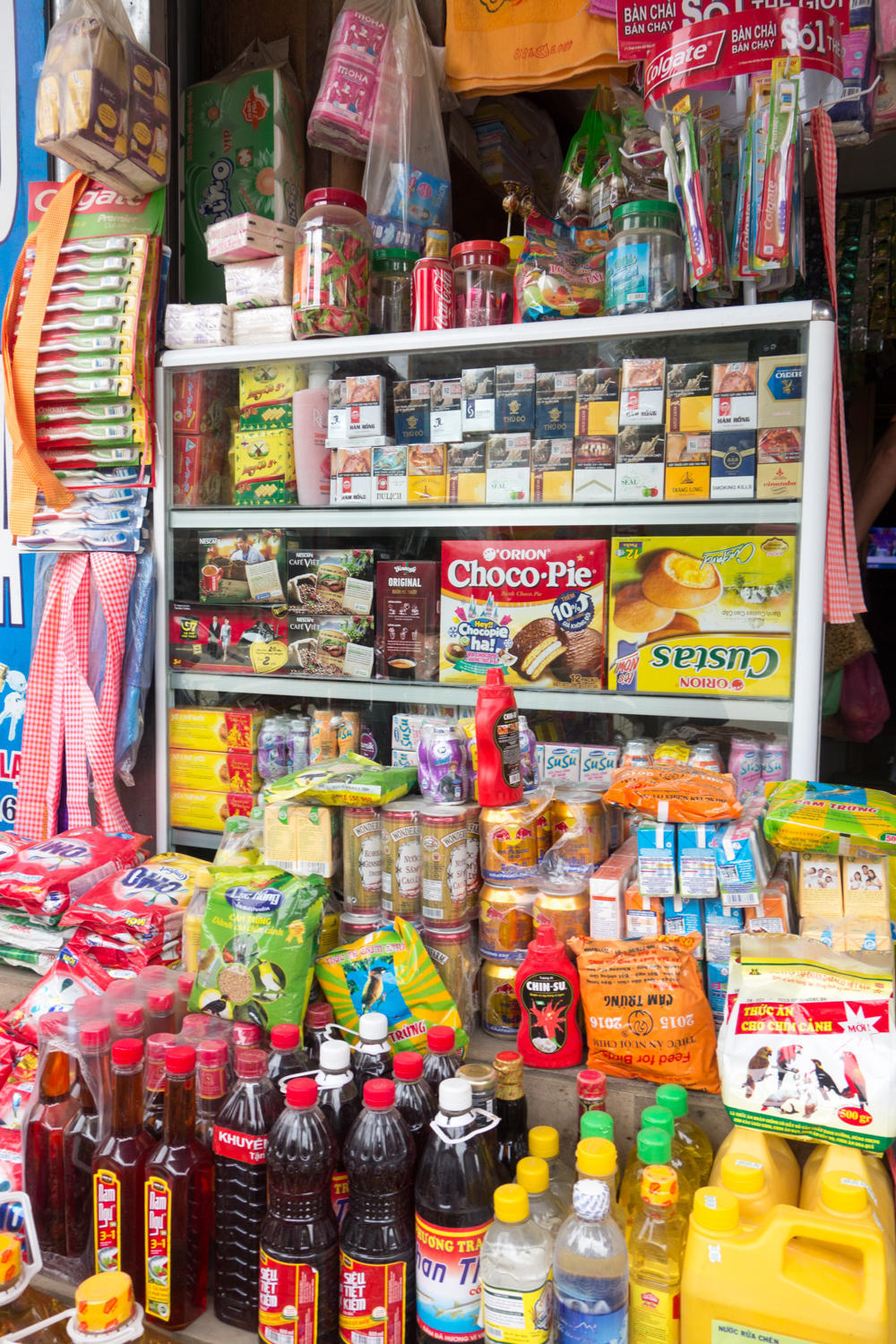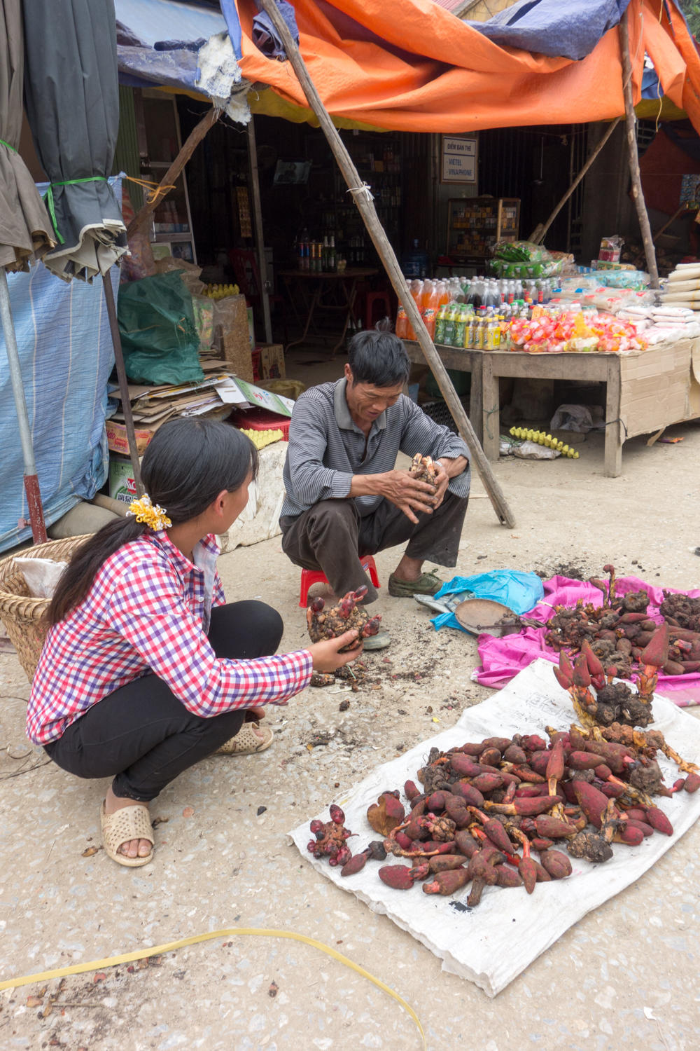 The second errand was Rachel getting a haircut. Every small village we've ridden through has a "toc", a hair salon. Haircuts can always be risky when communication is difficult, but this was a very nice cut. Most of times hair is wetted with spraying water before being cut. This time, Rachel laid down on a table like a massage table with head over a sink, hair washed. The washing was done by one guy, hair cut by another guy, and dried by another...all for only $4.