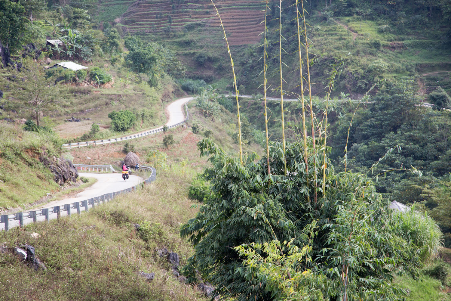The road out of town starts climbing right away. After about 5 km we turn on a smaller road that will take us closer to the Chinese border and into the terraces. The scenery is awesome, but the road is very steep, either up or down, there is no flat cruising today.