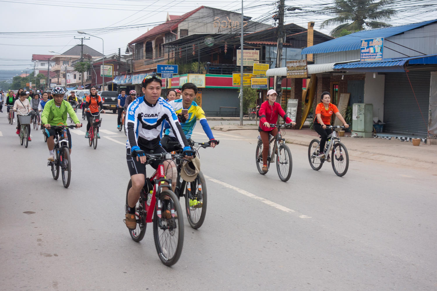 Today is a short day, setting us up for the long push to the Thai border. We still wake up early, it is hard to sleep-in when you fall asleep at 9:00 the night before. We have breakfast at the same bakery and stock-up on some goodies like baguettes, cake and a cinnamon roll. As we are enjoying our breakfast coffee a motorcycle with sirens and two cops on it passes and behind it are at least a hundred local cyclists going at breakneck speed. That’s going to cause a crash…..