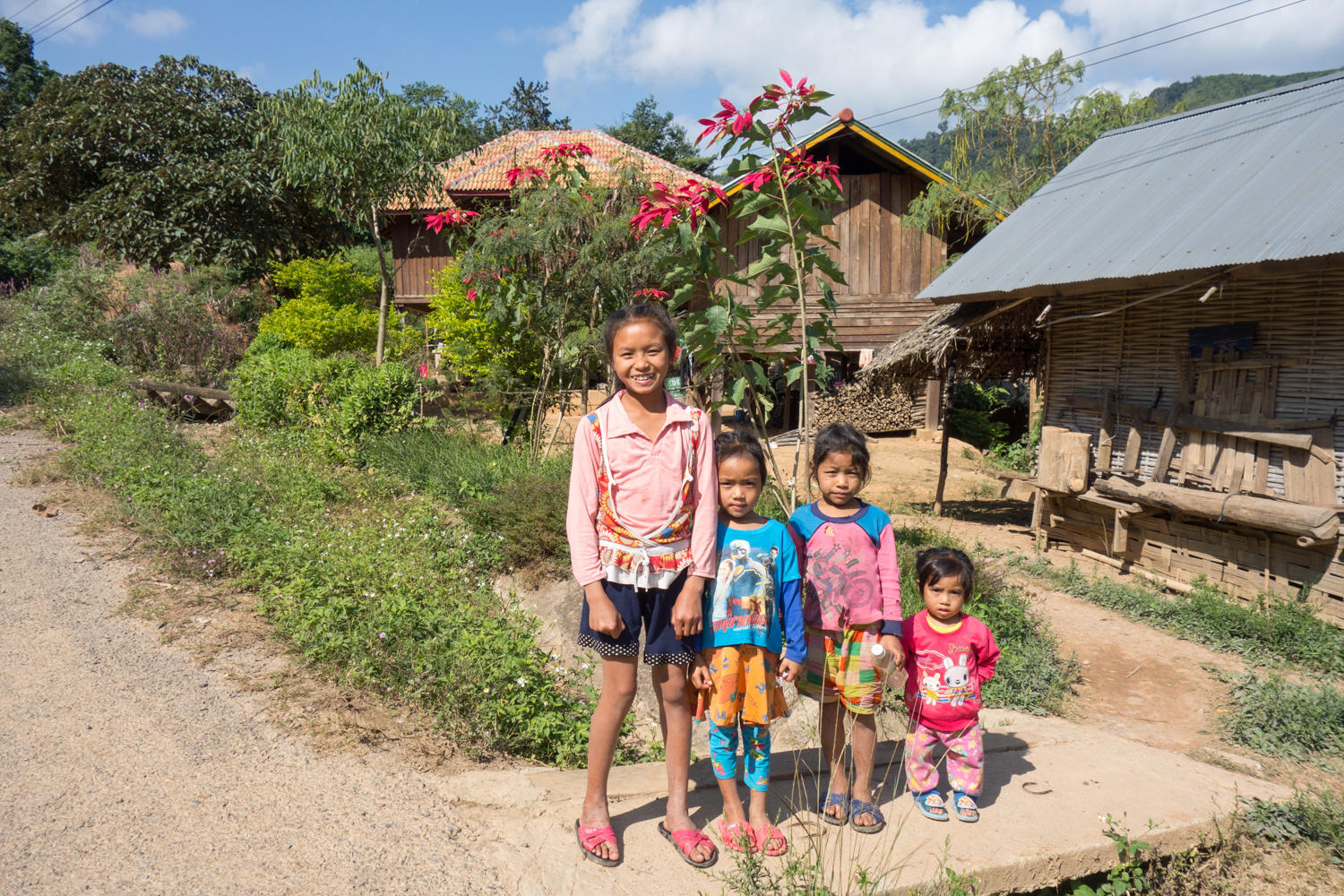 We pack-up and hit the road. The town we stayed in is the “new” Luang Namtha, about 7km down the road is the old town. Our old Lonely Planet says the old town has more to offer to the tourist, but as we ride through it appears all the backpackers hostels and restaurants are now in the new town. The road today takes us through the Nam Ha Biodiversity Area. It must be a work in progress because there are an awful lot of clear cutting on the hillsides and rubber tree plantations along the roadside. The road surface has deteriorated in sections with no asphalt. “We know now what has happened to the asphalt” Rachel says as we pass by a house we notice that the broken asphalt has been used to create a path from the road to the house. We pass through several small villages with full body waving and shouting children. Sabadee! Sabadee! Sabadee!