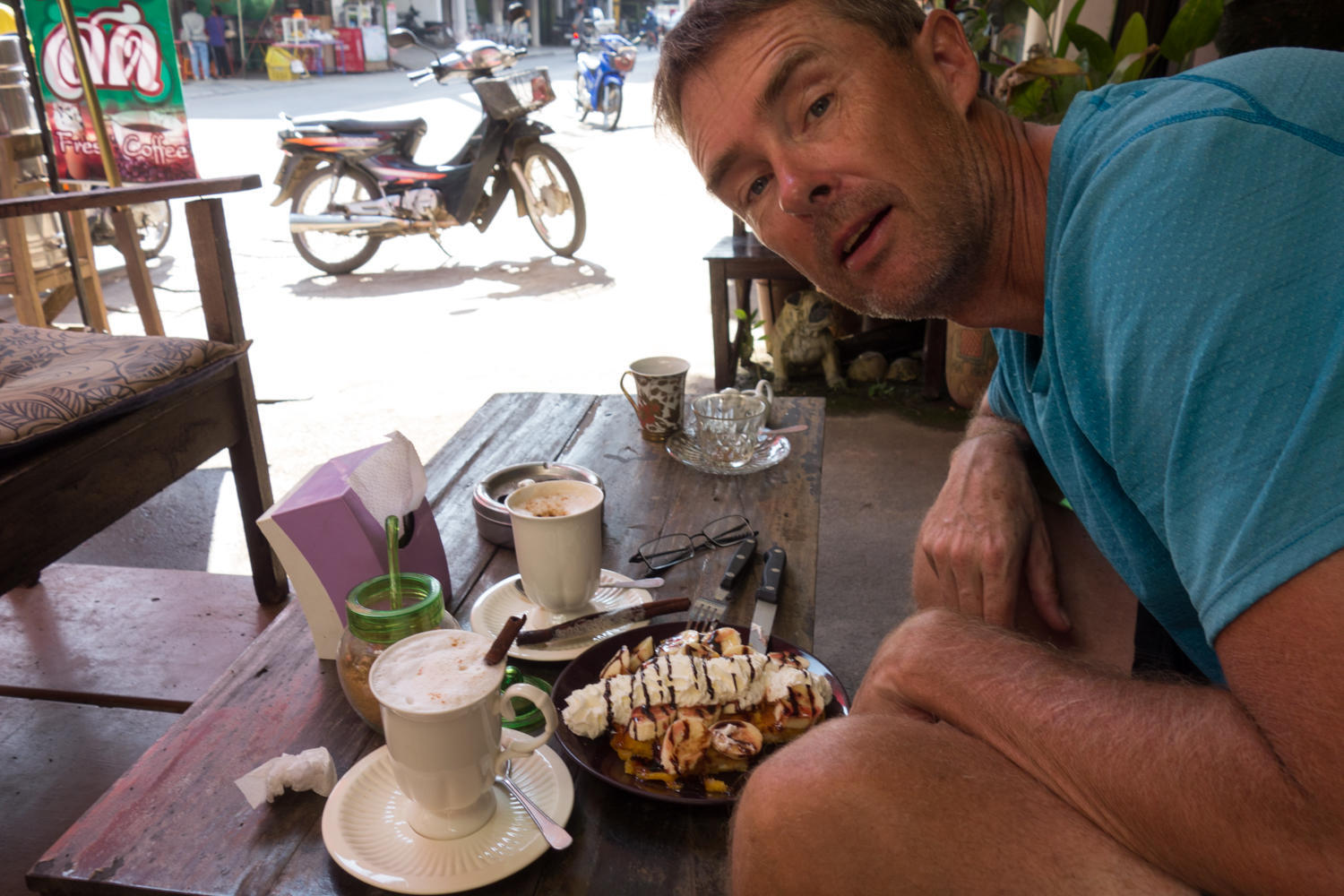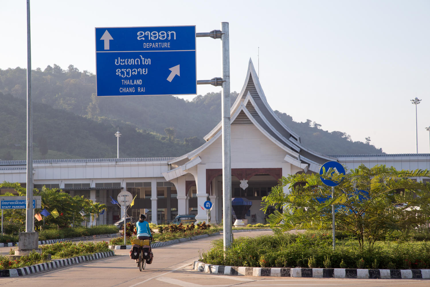 Morning fog over the Mekong. We have to ride about 10km south to cross the new Friendship Bridge.
