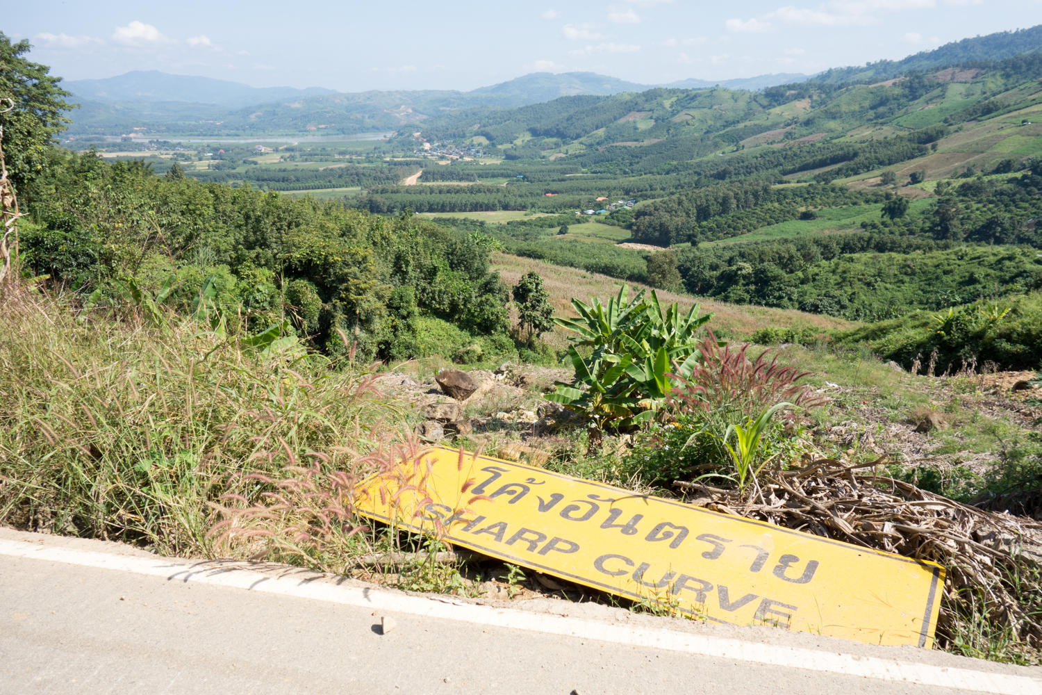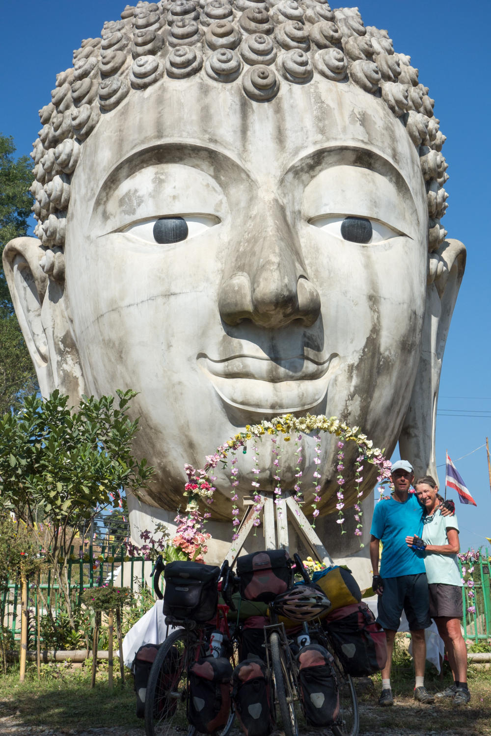 Thailand drives on the left side, so we have to get used to that again. We head to Chiang Khong, stop for coffee and breakfast and head upstream along the Mekong. Across the river we can see the town we stayed in last night, not more then five hundred meters away after cycling 20km. All thanks to the new bridge.