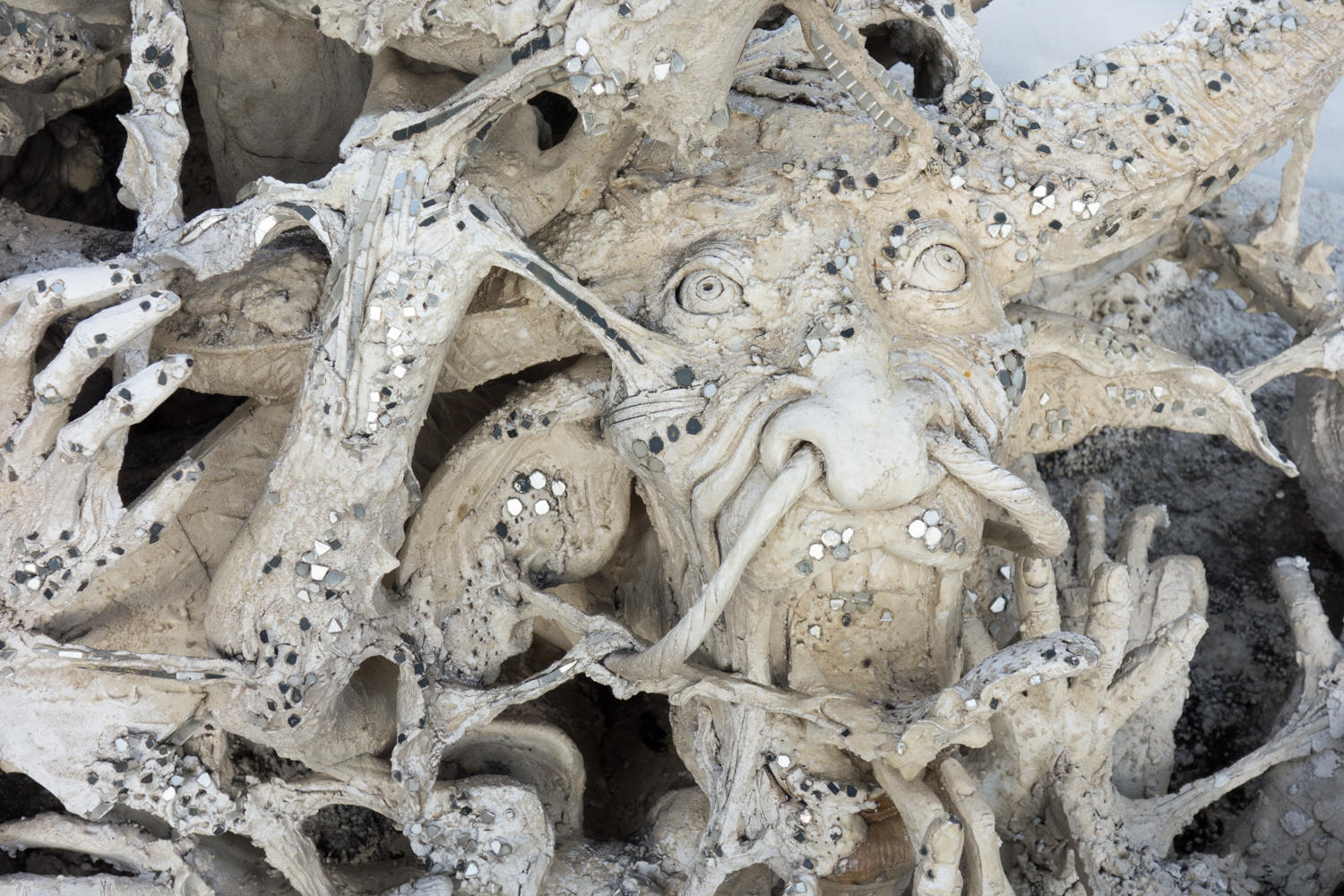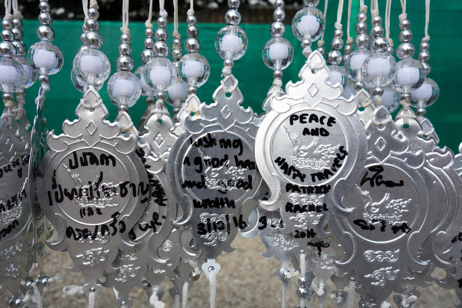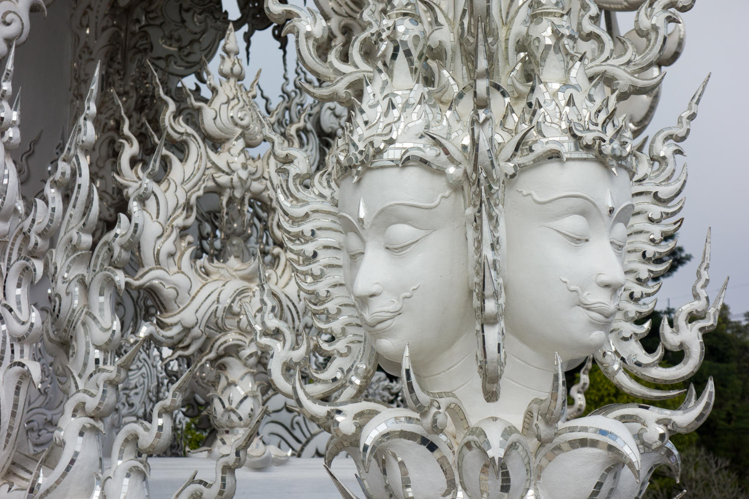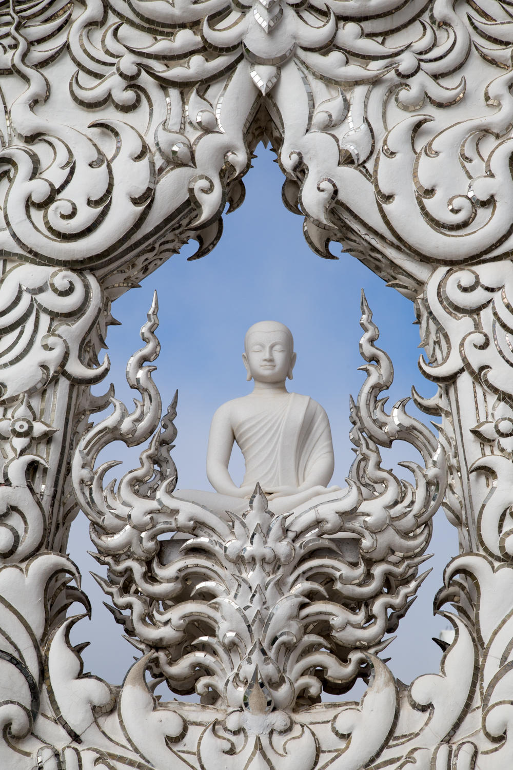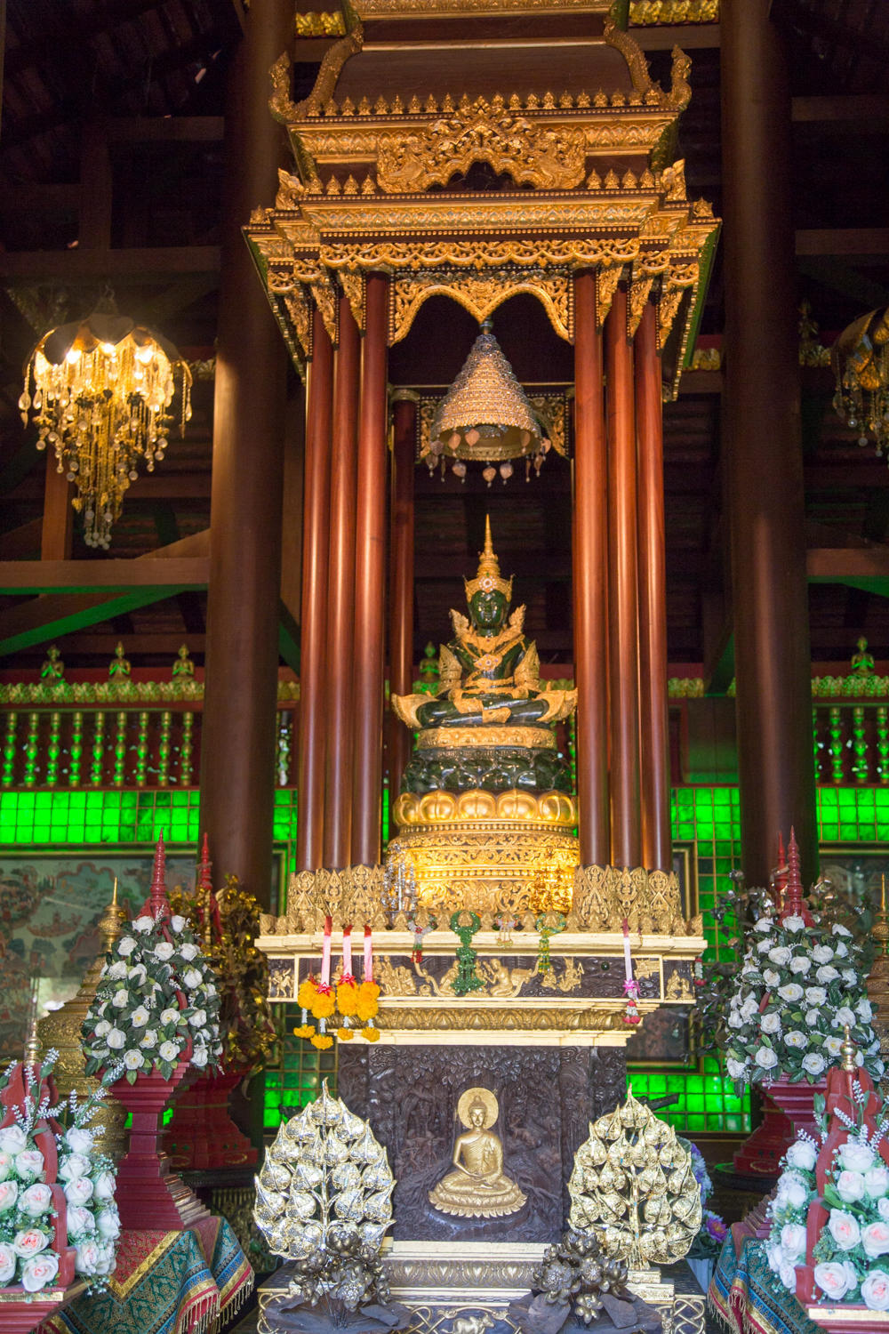 We wander around the White Temple, and let the pictures tell the story. We find a ride back to Chiang Rai bus station and walk back to the guesthouse area for lunch of pad Thai. After resting a bit mid afternoon we explore two more temples. One has a replica emerald Buddha, the original is now in Bangkok.