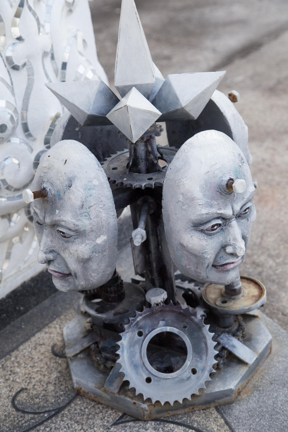 The main attraction for today is to see the White Temple. Patrick got instructions to the bus station but we had a bit of a problem finding it but finally arrange a ride in a blue songthaew. A songthaew literally means "two rows" is a pick-up truck converted to a passenger vehicle with two benches in the rear that face each other.