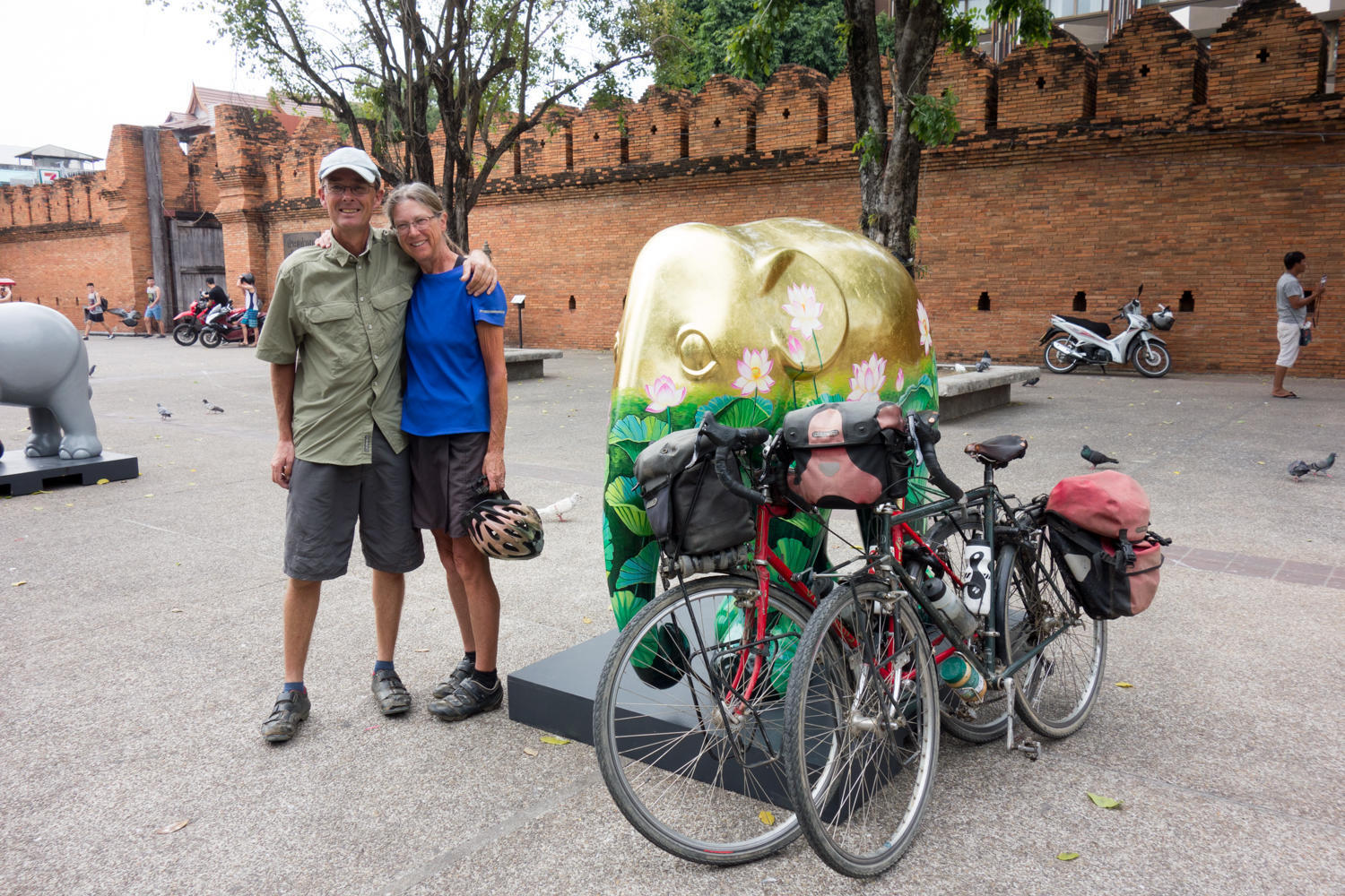Day one: a very nice restful quiet night. Fixed porridge for breakfast then headed out for shopping, breaking our rule of not riding bikes on rest days, but public transportation from the suburbs to downtown Chiang Mai is not very good.