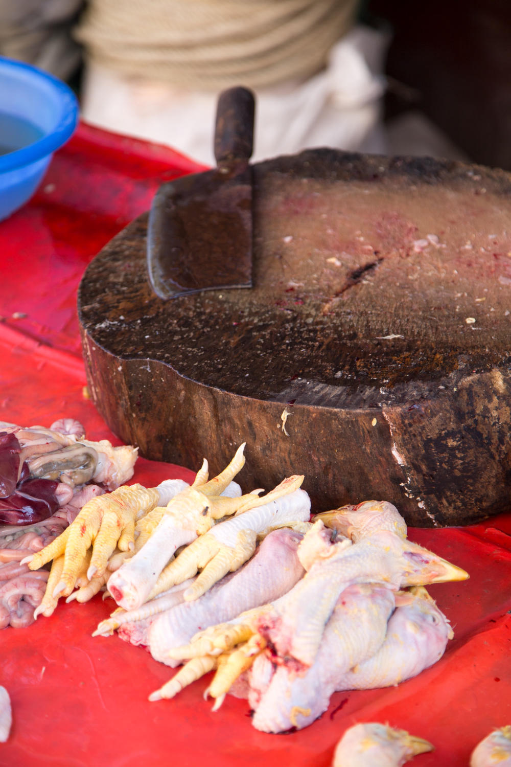 "I'm starting to have problems seeing my food alive" Rachel says. "Yeah, it's a fine line" Patrick replies. We are walking through the morning market where we see chickens in baskets under the table where chicken meat is being sold on the table top. This feeling has been evolving with every pig lashed to the back of a motorcycle and chickens tied upside down on a bike heading to market.