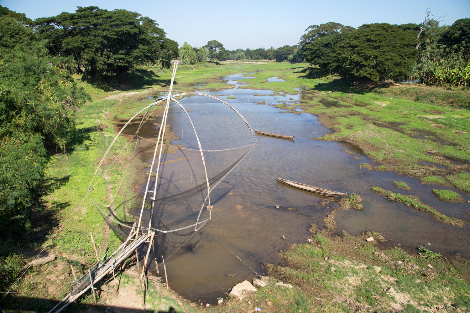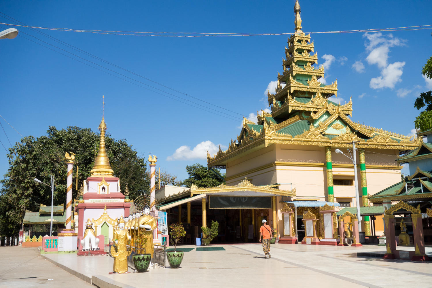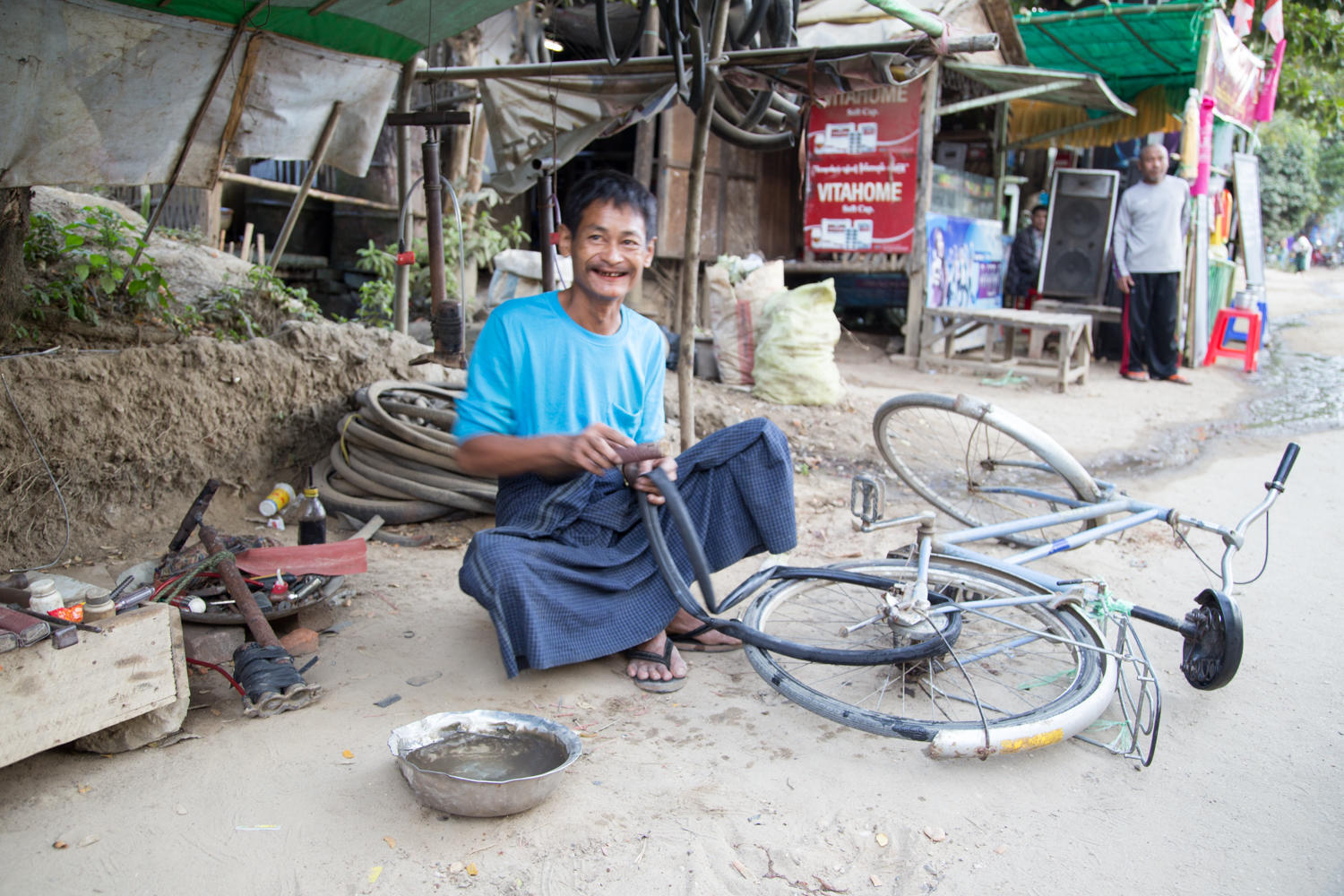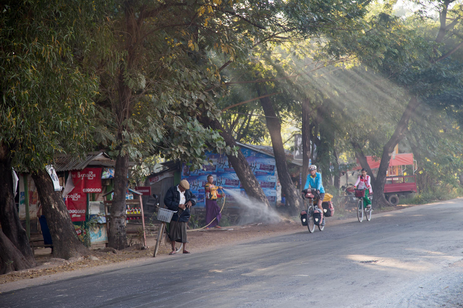 Riding into Pyay. Our guesthouse is near the bridge that crossed the Ayeyarwady River. Route 2 though crosses underneath the bridge and we have to make loop through town and climb a hill to get to the guesthouse.