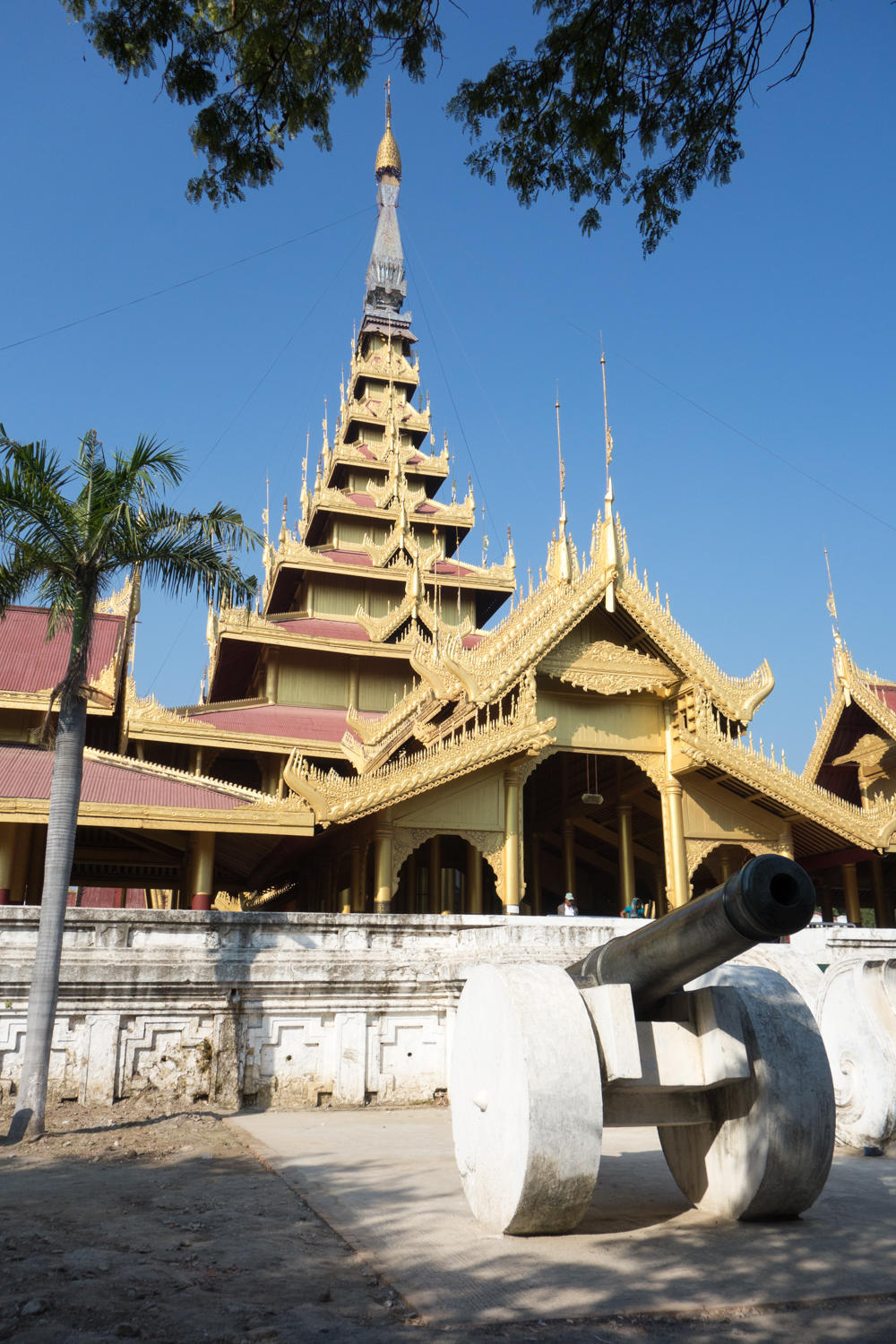 First stop is the Royal Palace inside a huge military base in the middle of the city. There is a 3 x 3 kilometer square moat with walls and only one entrance for foreigners. In the middle is this fairly new re-built palace.