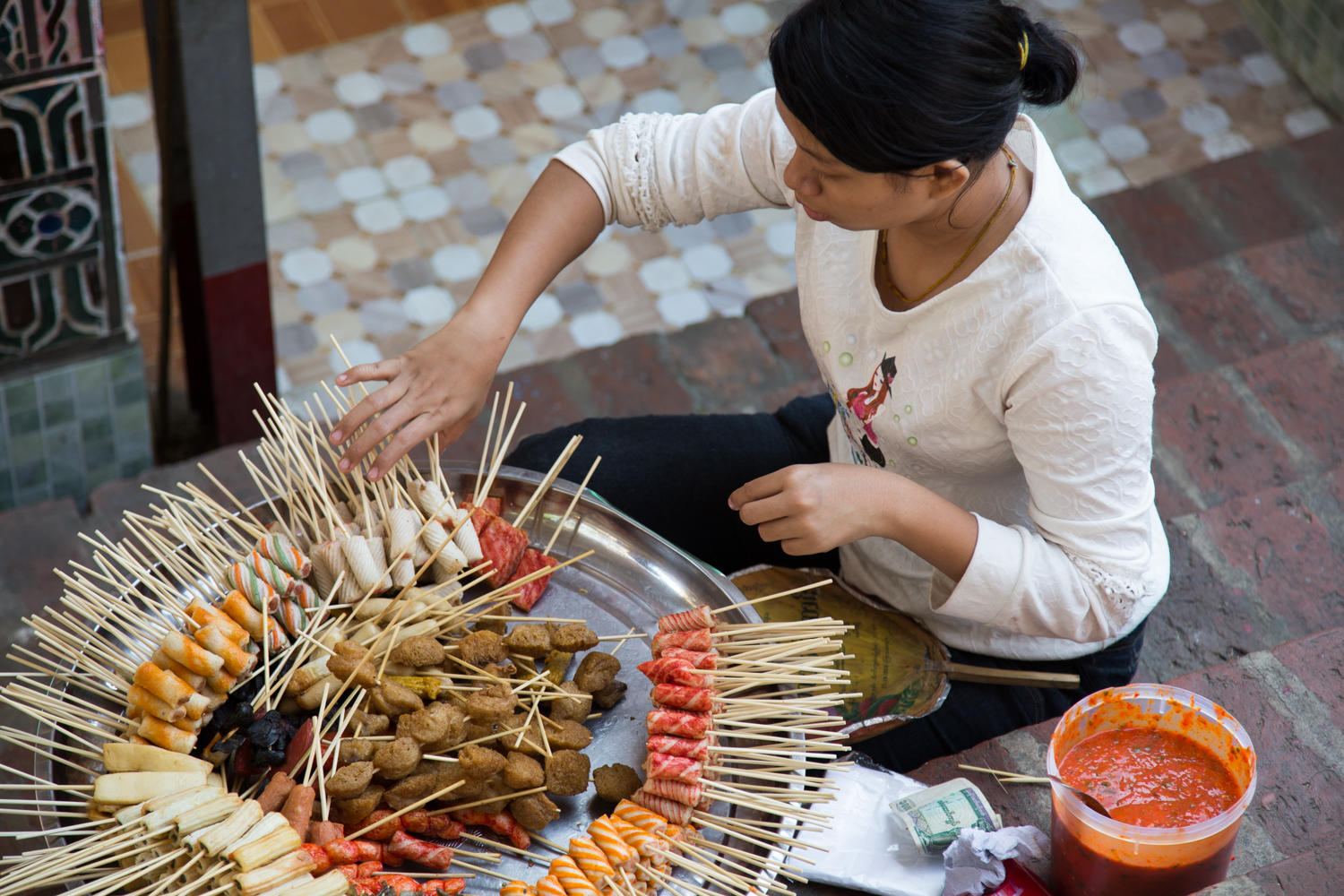 Day one: "This is an awesome breakfast" we both agree. The spread is a merging of two worlds. At one end are the Burmese dishes of rice, noodles, and soup then the fried eggs make the transition to toaster for bread, jam and butter, omelet, pancakes and honey, juice, coffee with milk, black and green tea.