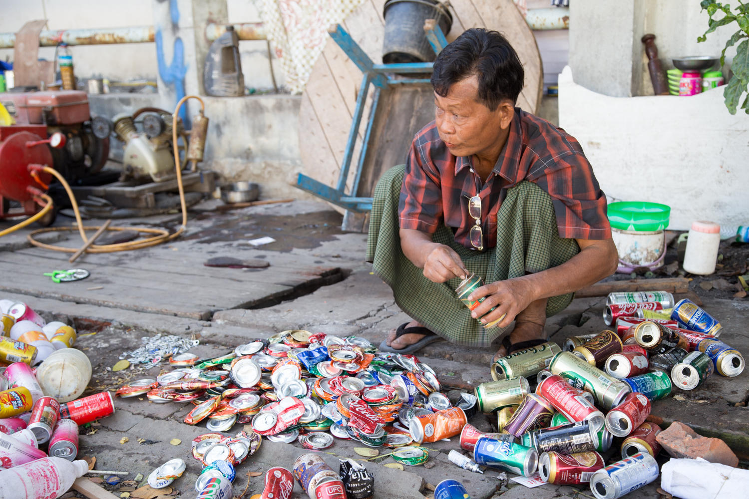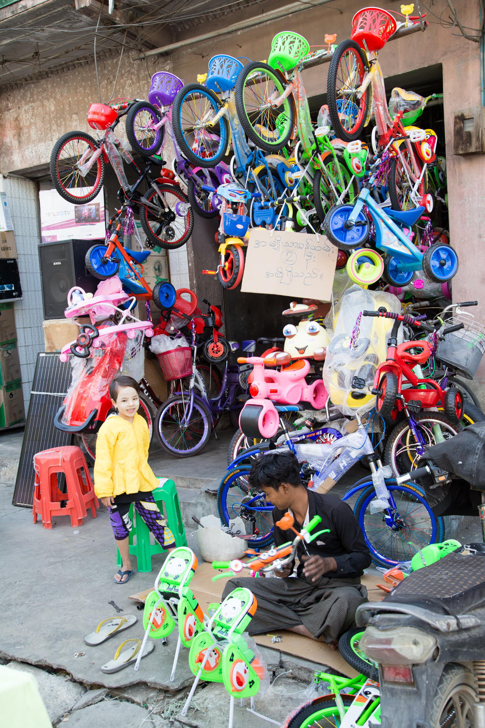 Day two: "This is not a walkable city". We've been in lots of cities where the sidewalks are cluttered or used for parking or open drainage ditches, but Mandalay seems the worst. We see very few people walking.