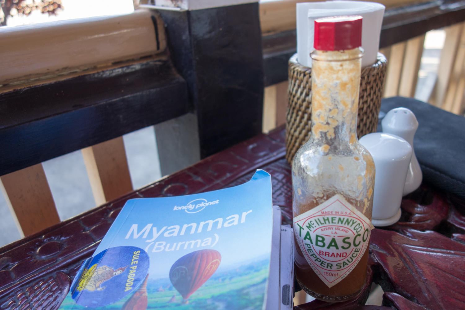 After Kyaukse, our driver took the main road that stays in the valley and not the road up to Ywangan we considered cycling. This was a very busy road with lots of trucks, a 2 inch drop off to the dirt shoulder. We stopped after a couple of hours for lunch. The driver is very friendly and a cautious driver, we buy his lunch, he gives us two big bottles of water. The scenery is much the same, though more large agricultural areas.