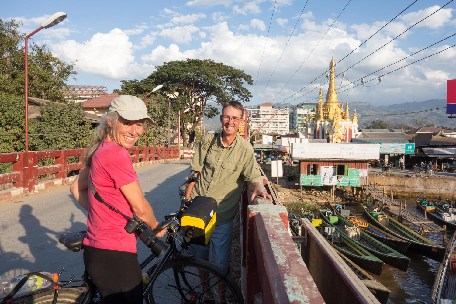 "We are going the route we would have cycled, so that's nice to see" Patrick says. We've loaded the bikes in the back of the taxi and headed to Inle Lake. Patrick had to take off the front wheels and the seats, but everything fit in the back.