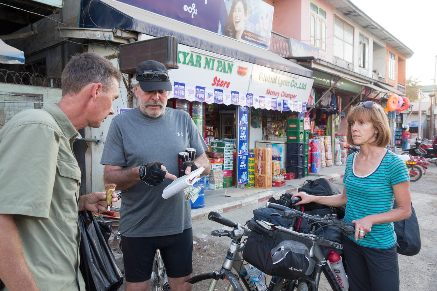 The 300km taxi ride cost $150 which seemed to be the going rate in Mandalay. That is quite a bit of money, compared to a bus which would probably cost about $40 to 50 including the bikes. The minivans the hotel called for us could not take the bikes and we did not want to take a night bus. First of all we want to see the country, second we don't like the idea of getting dropped off at 5am after a sleepless night and having to wait to check into a hotel. For us this was money well spent. Hopefully we don't have to do it too often.