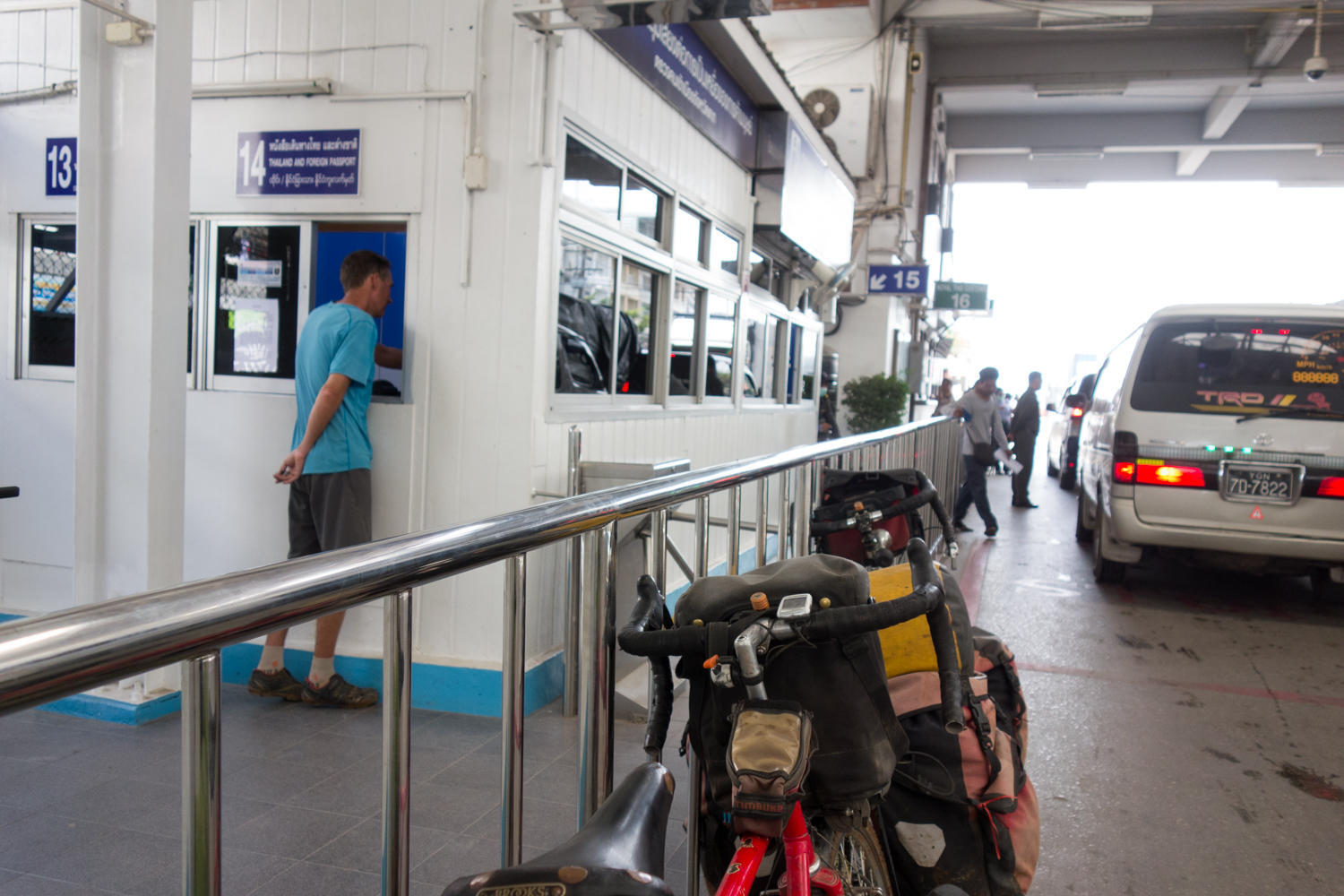In Myawaddi we get dropped off at the hotel where we stayed four weeks ago because it has a quiet parking lot. We load up, spend the last of our kyats on a cold drink and head for the border. No issues stamping us out of Burma and back into Thailand. Heads up: Thailand now only allows visa-exempt travelers who just get a 30 day stamp at the border to do this twice per calendar year.
