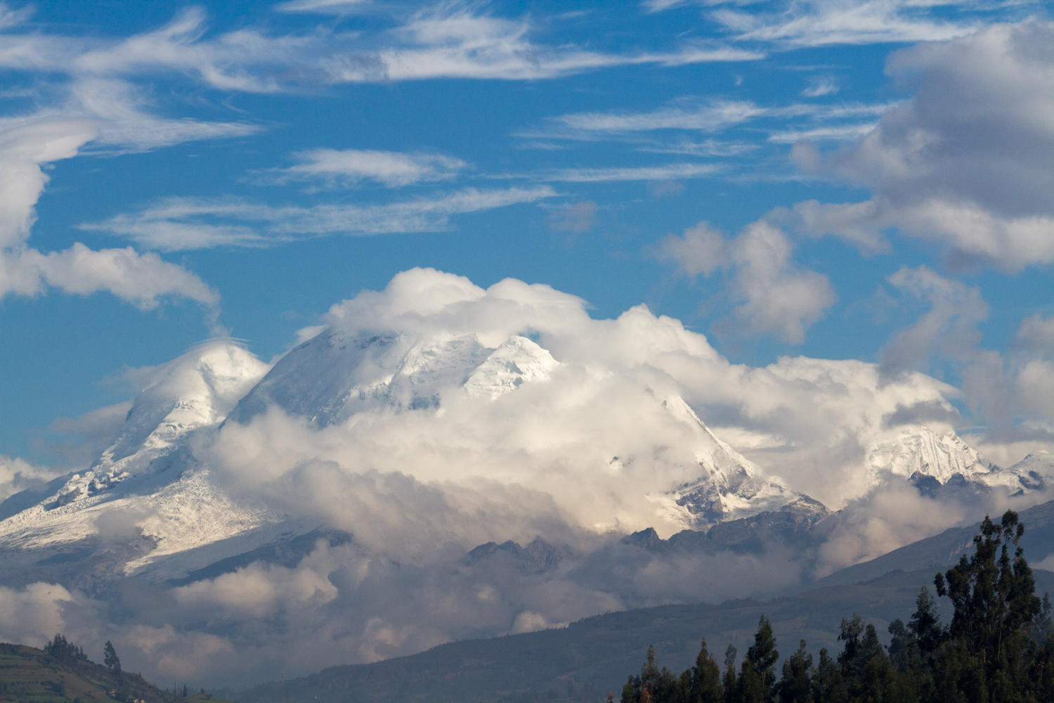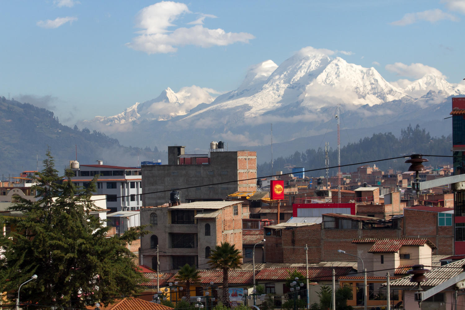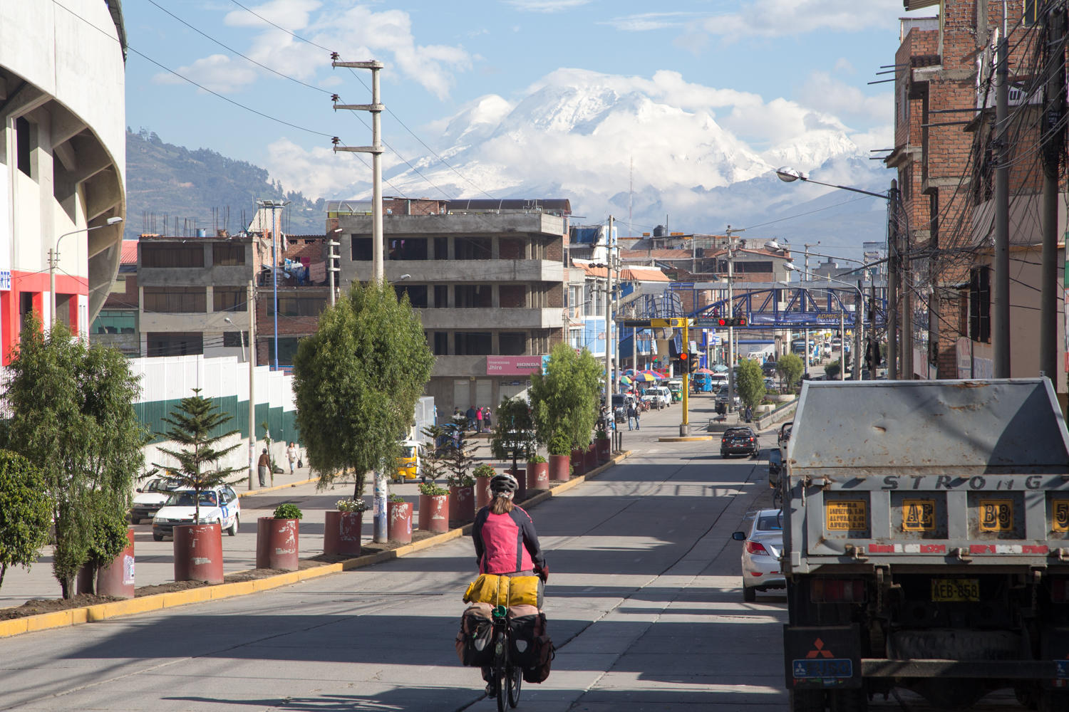 Leaving Huaraz, Huascaran the highest mountain in Peru is clearly visible. Not for long though, a couple of hours later the peak is shrouded in clouds.