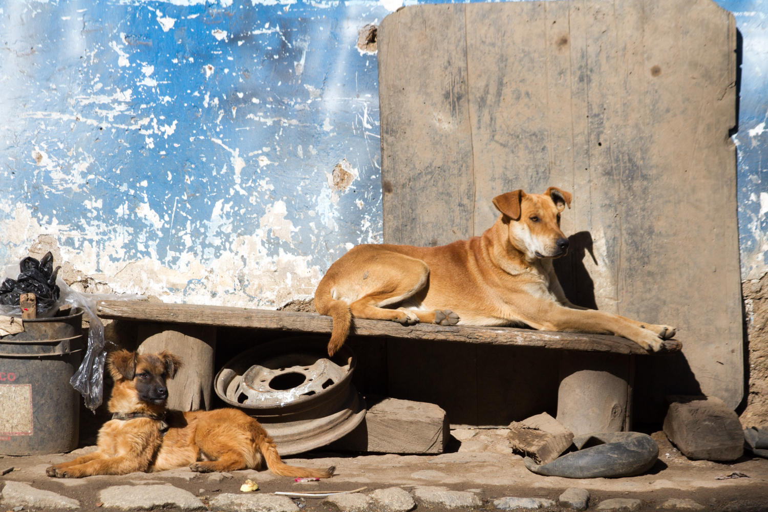 As the day progresses so does the traffic of minivans, buses and cars, very few big trucks. We are losing elevation from about 3100 meters to 2400 meters, but it's not all downhill, there are a few hills. We struggle on these. Dogs seemed to be more aggressive on this stretch, giving chase.