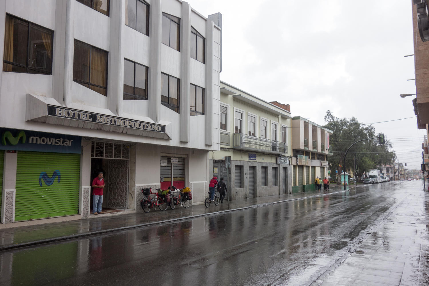 Riding into town was a challenge. Rivers now flowed across the road and cars splashed through the not well draining streets. We find Hotel Metropolitano and find a very friendly guy at the reception. He shows us where to park the bikes in the back and helps carry our gear up to the room. We are apologetic of dripping all over the lobby and he doesn't seem to care. After a hot shower, and warming up it is 2:30pm and we venture out to find the supermarket and something to eat. There are two supermarkets, we shop for a few things at the first one, then go around the corner to the second one. Just as we enter, there are Michelle and Evan then Ellen comes up and we made plans to meet for dinner. They took two days on back roads from Vilcabamba to Loja. Check out their site: www.Fort2fuego.wordpress.com