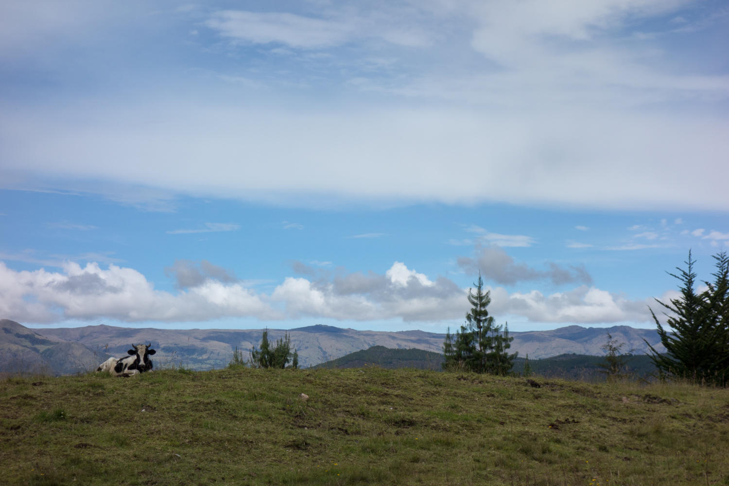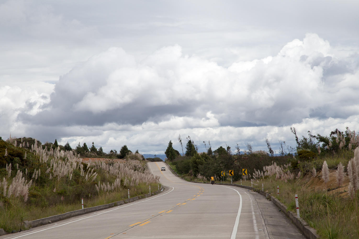 The Pan America bypasses the town, but it is easy to find. We drop another couple of hundred meters before the "climb of the day" starts, about 800 meters gain to just over 3000 meters altitude. It starts off fairly steep, then slackens off a bit, to steepen again near the end. The scenery is nice; green hills as far as you can see. We stop twice to eat and reach the high point as the rains threatens. The wind is cold so we need our goretex. There are some nice forests up here that seem good for camping.