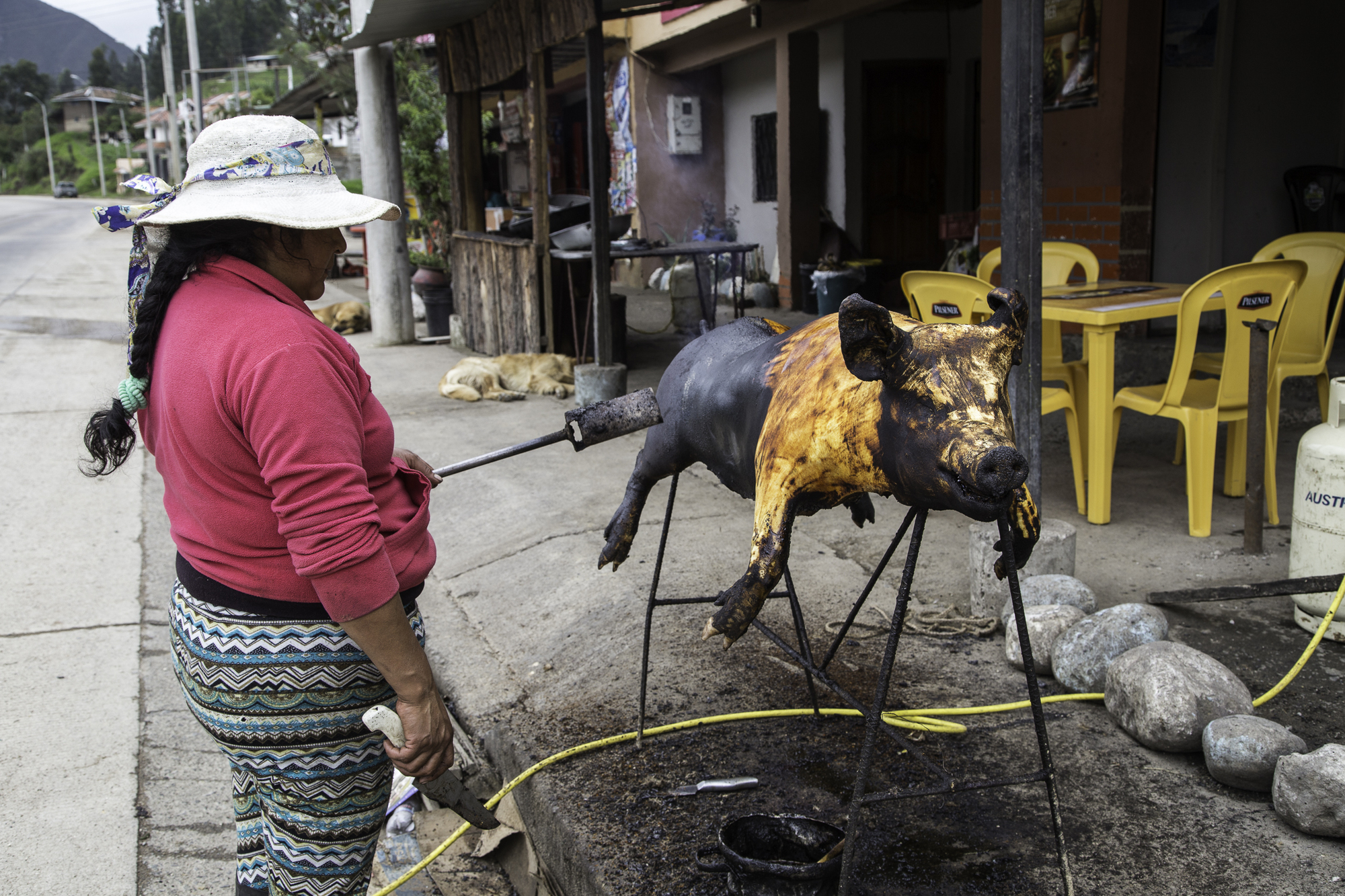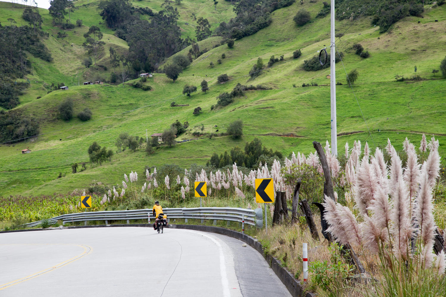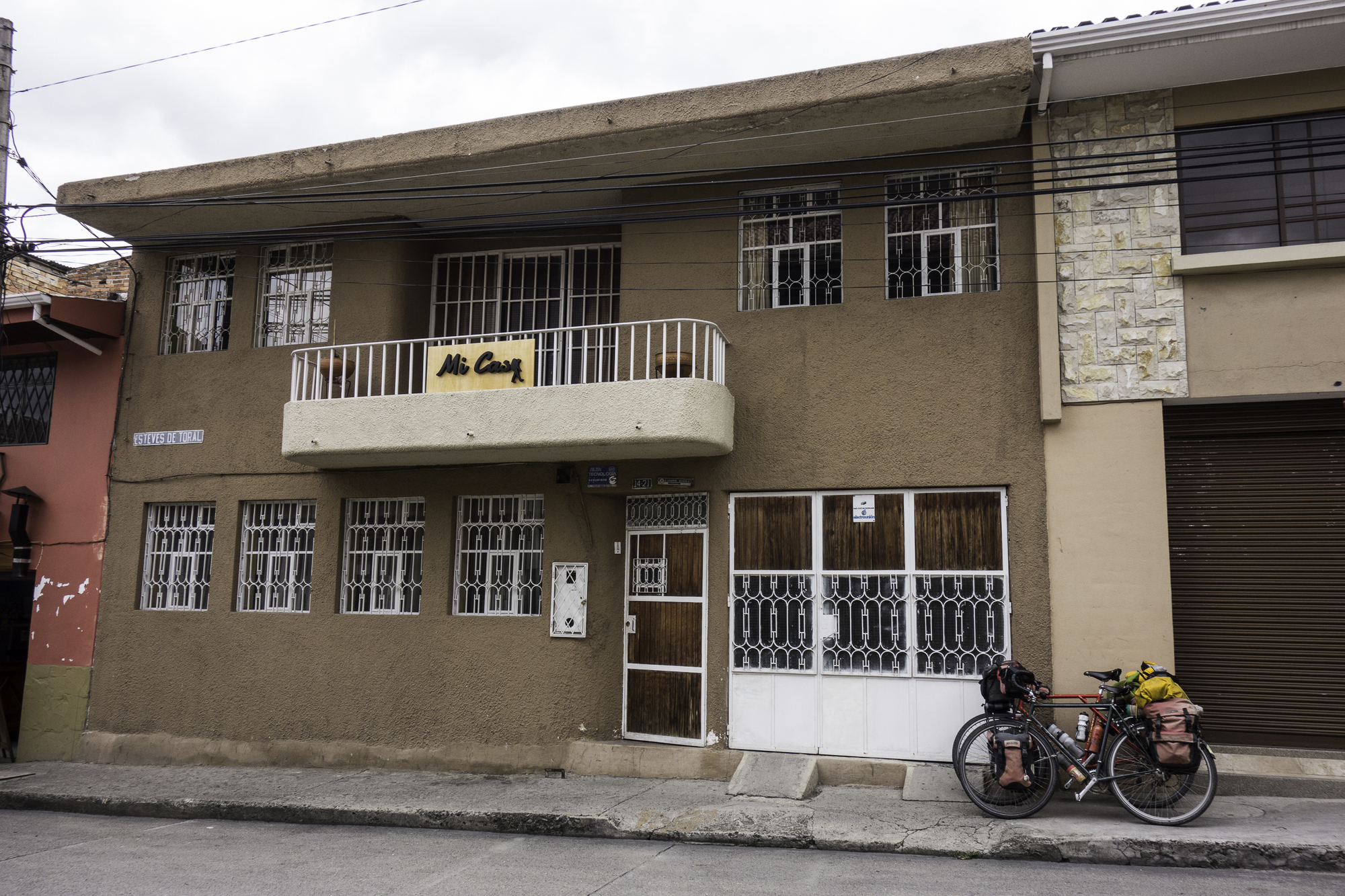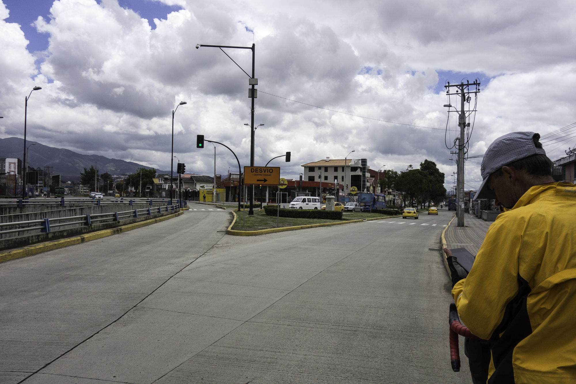 As our downhill peters out we get into busier traffic on its way to Cuenca. There is a "bikelane" marked on the shoulder, except that it is covered in mud and gravel for most of the way. Cuenca is the third largest city in Ecuador but we avoid most of it by taking the northern ring road towards the hostel we had picked. There is construction going on for a new light-rail system and sections are narrow or blocked-off.