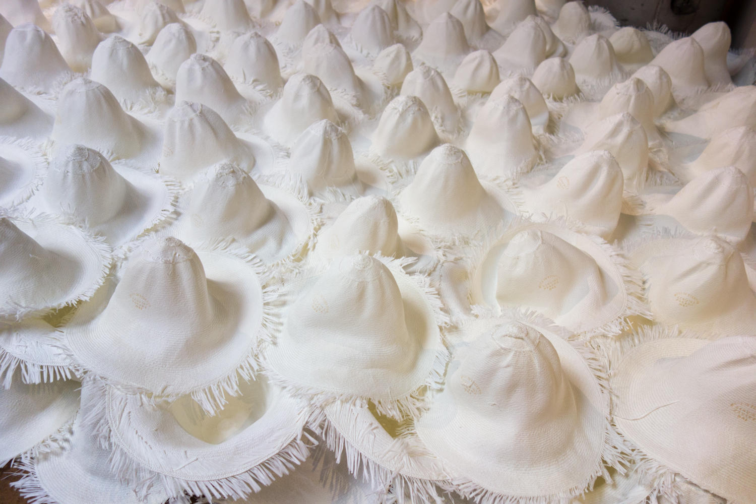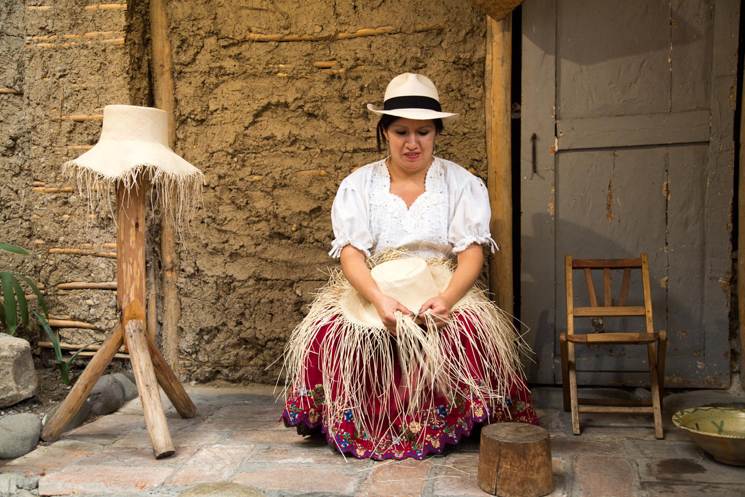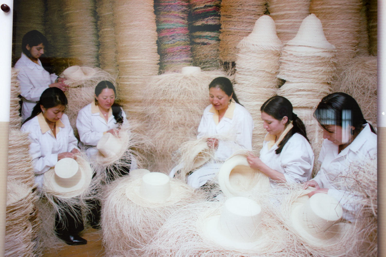 At ten, we join a free walking tour of the city, except that the walk takes us out of the historic center to the river from where we board a minibus to a "panama hat" factory. It is interesting to see how the hats are made from the fibers of the toquilla palm tree. The name is a misnomer, started by Teddy Roosevelt. The hats were sold to the builders of the Panama canal and when the president visited he wore one and called it a Panama Hat. The hat really originates in Ecuador. The hats are woven by women out in the villages, then sold to factories like this one who bleach, dye and shape them. A woman can weave one in about 4 to 6 hours over two days and sells it for 8 to 10 dollars for a regular weave. The shops sell these mid-level hats for about $40. High end hats can go for thousands of dollars.