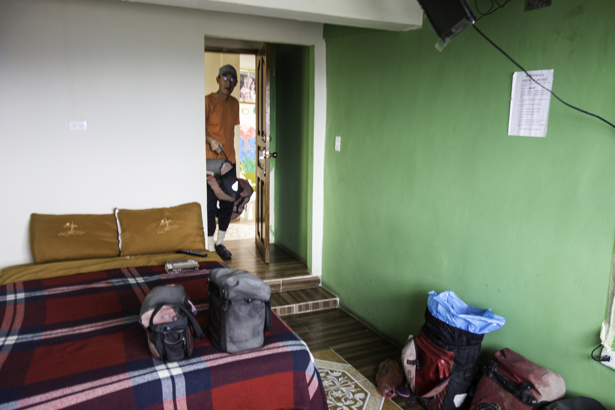 The town has a couple of hotels, but we go on past the town to Hostal El Recreo where Tony and Sarah stayed. The first impression isn't so great, there is a courtyard with a swimming pool that doesn't look all that inviting. But the room is nice, it has an attached bathroom with hot shower and there even is WiFi. All this for only $10 dollars which is by half the cheapest place we've stayed in Ecuador. On top of that the lady that runs the place is very nice. She helps carry our gear up and will fix us dinner tonight. She assures us she is one of the best cooks in town.....