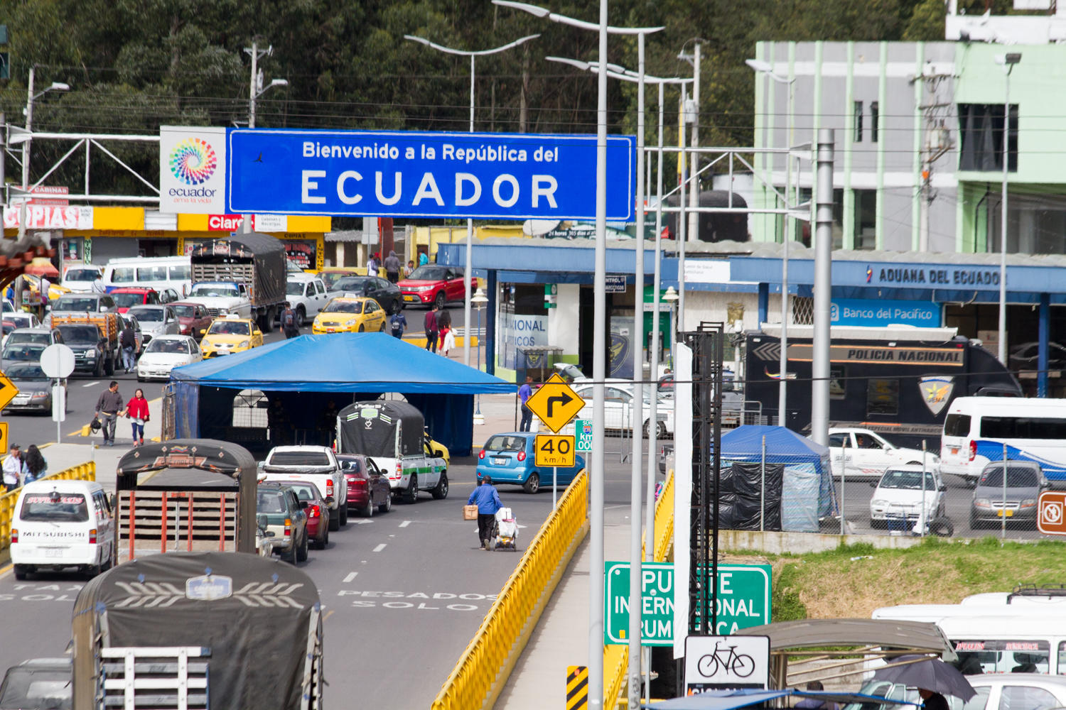 Finally after an hour and 15 minutes we have the exit stamp. Then we ride a hundred meters to the Colombian immigration. This side was much more efficient. We go in one at a time so the other can watch the bikes. No forms to fill out, they only want to know where we are going in Colombia and we get 90 days.