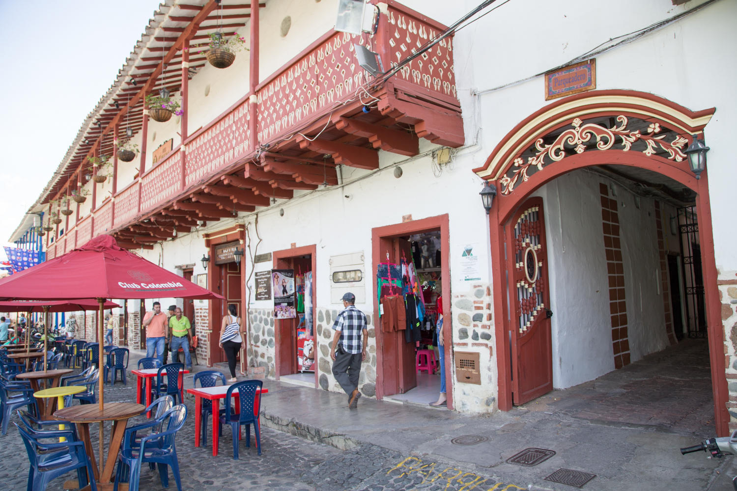 A little later we walk around the town. The center is very nice with cobblestone streets lined with colonial buildings. There are several churches, but they are all closed this afternoon. Our plan is to take a bus to Medellin tomorrow so we seek out the bus station. There are buses every thirty minutes and it does not sound like the bikes will be an issue.