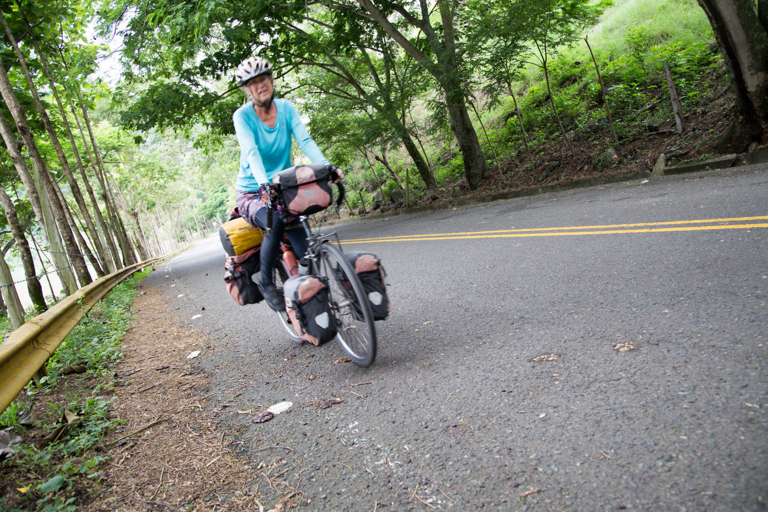 We continue to lose elevation along the Cauca river, though it is a constant up and down there are a few sections of almost flat making for nice riding. There are less sections of construction sites of washed out roads. After the morning clouds lift it gets hotter and hotter. We have enough water and stop a couple of times for a cold drink.
