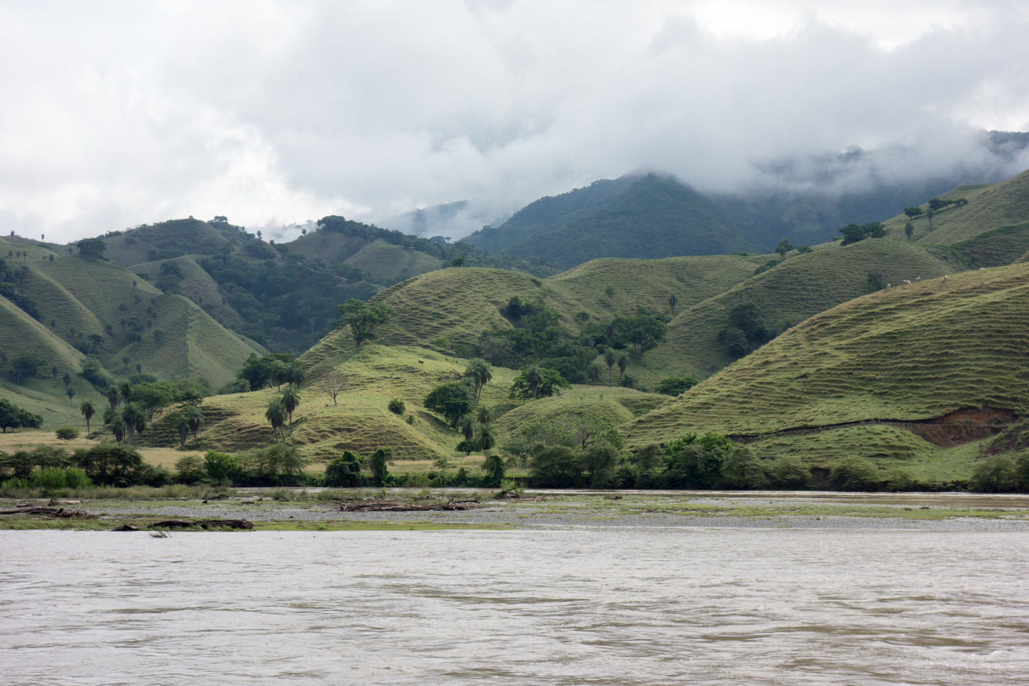 Another early start to try and beat the heat. We get cloud cover for the first couple of hours riding along the Rio Cauca.