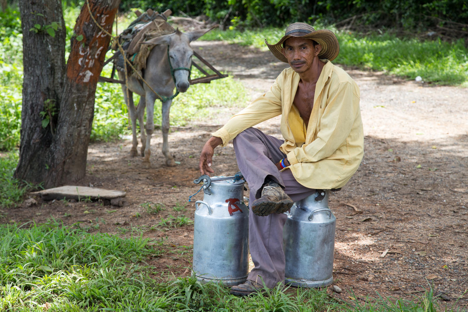 Sunday morning it is time to move on. We hear it raining when we get up, but that does not last long, fairly soon the clouds break and it gets hot again. About 10km outside of Caucasia we see a cyclist coming our way. We have communicated with Sam Burchell and knew he was headed our way. We had hoped he would have made it to our hotel last night so we could share a beer and stories, but at least we have a roadside meeting. We share some road advice and take photos of our meeting. Sam has an interesting blog on this website:
