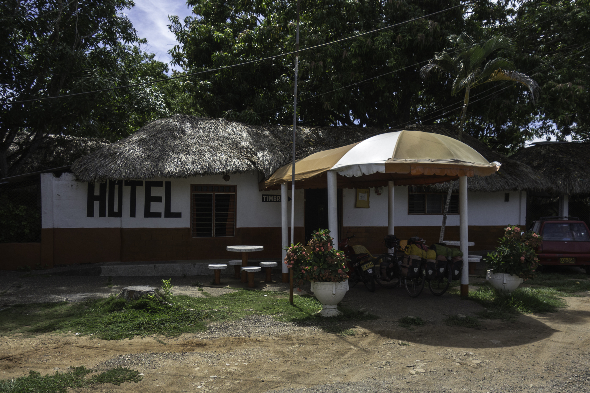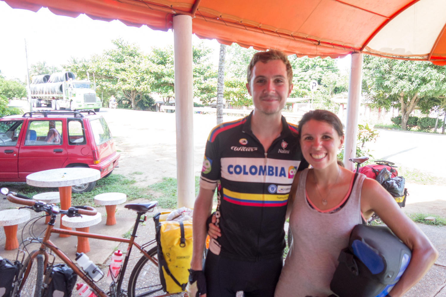Our original plan was only to go as far as a nice hotel with swimming pool about 5km before Planeta Rica. When we get there it is still early. There are two more cyclists coming our way that we have been communicating with, Tom and Hillary. They plan to stay at a hotel about 25km down the road. We decide to ride on to meet them there this afternoon. Going this way is not the most direct route to Tolu, but it only adds about 20 kilometers to our route.