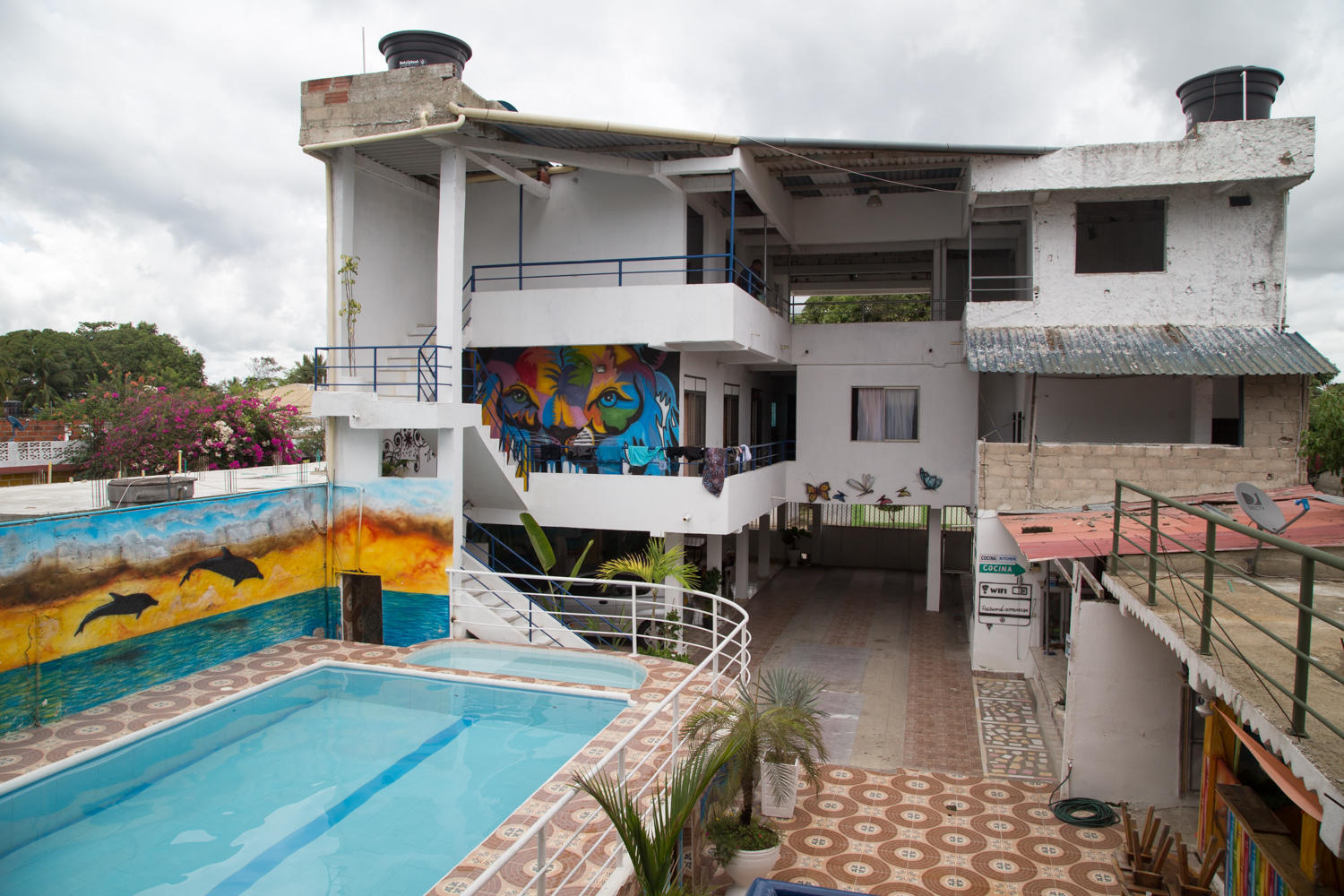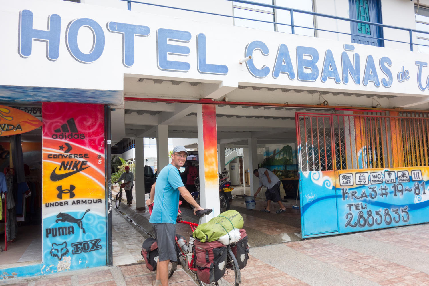 Our hotel in Tolu. We take one more restday before riding to Cartagena. The pool is nice in this weather. You can see our laundry drying over the balcony.