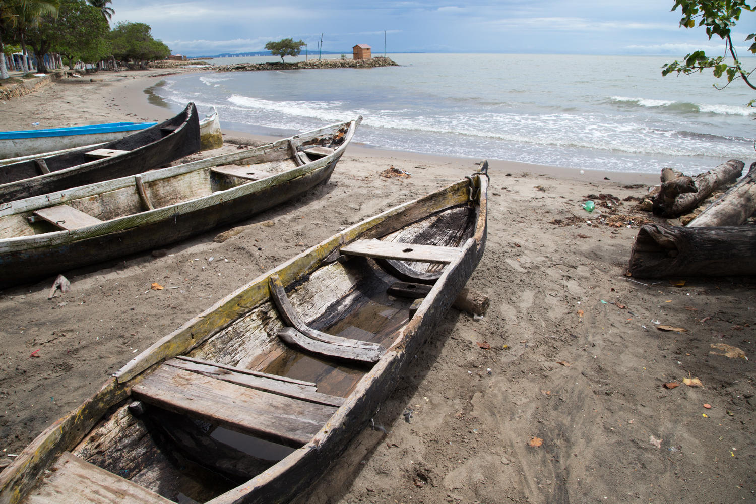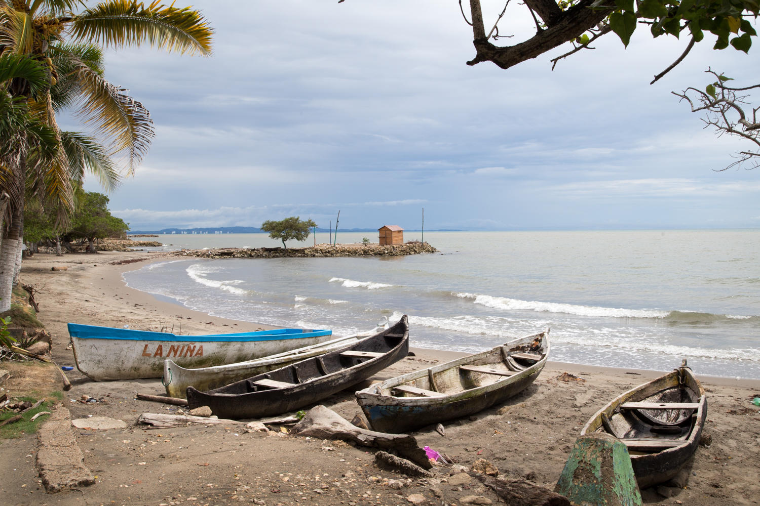 Tolu is a popular holiday destination for Colombians. On a weekday in the rainy season the place is deserted though. We find a decent room for a decent price at the "Cabanas de Tolu". Our criteria was we wanted AC and a pool for a cheap price.