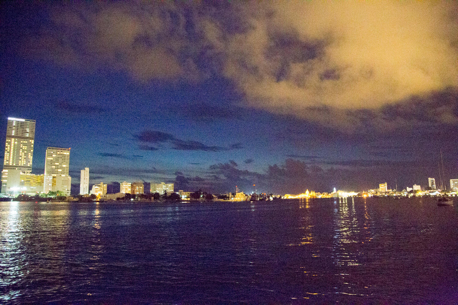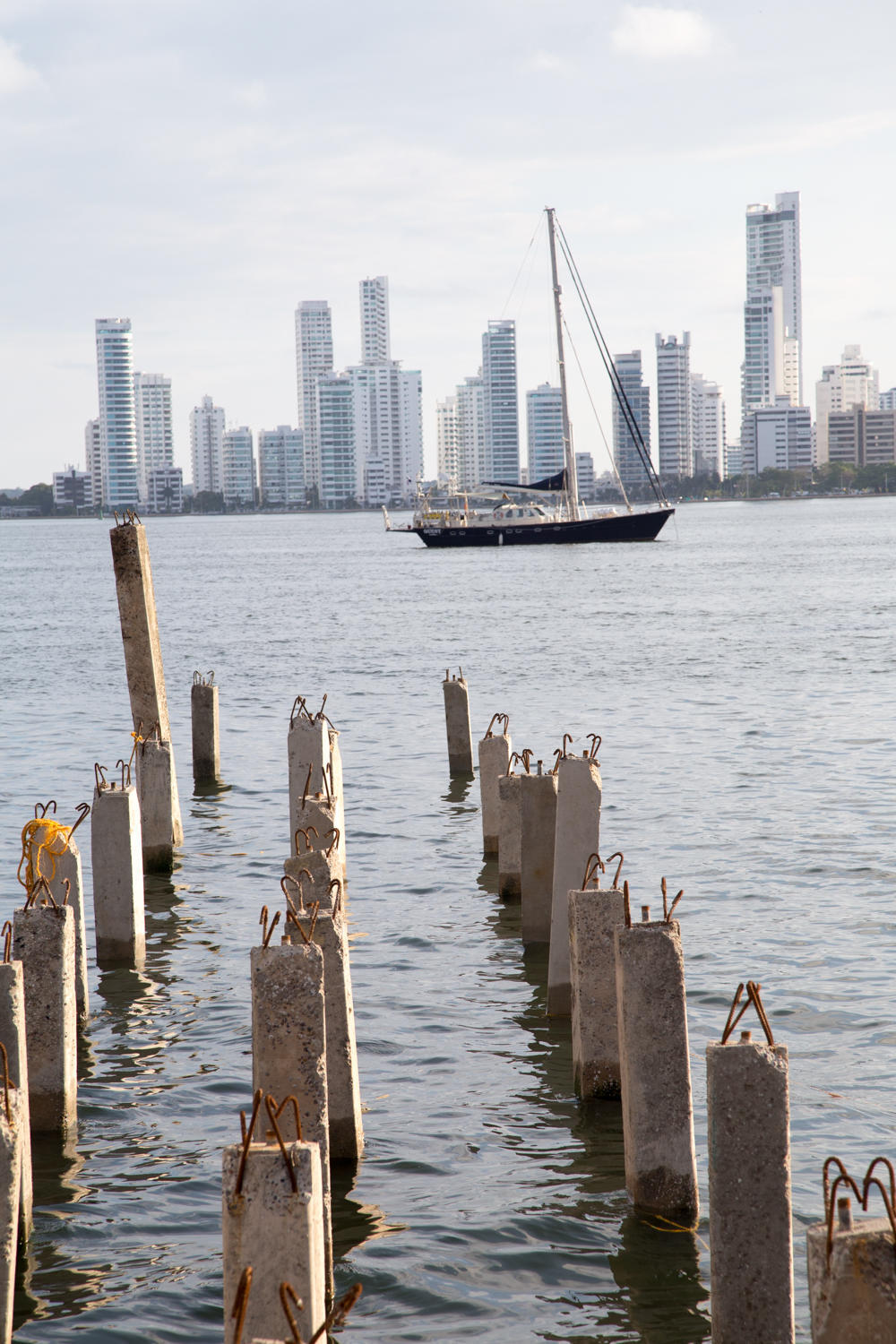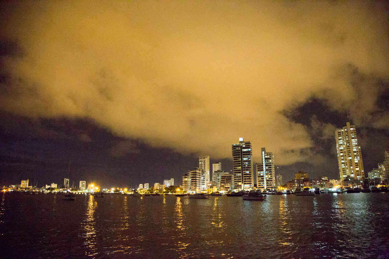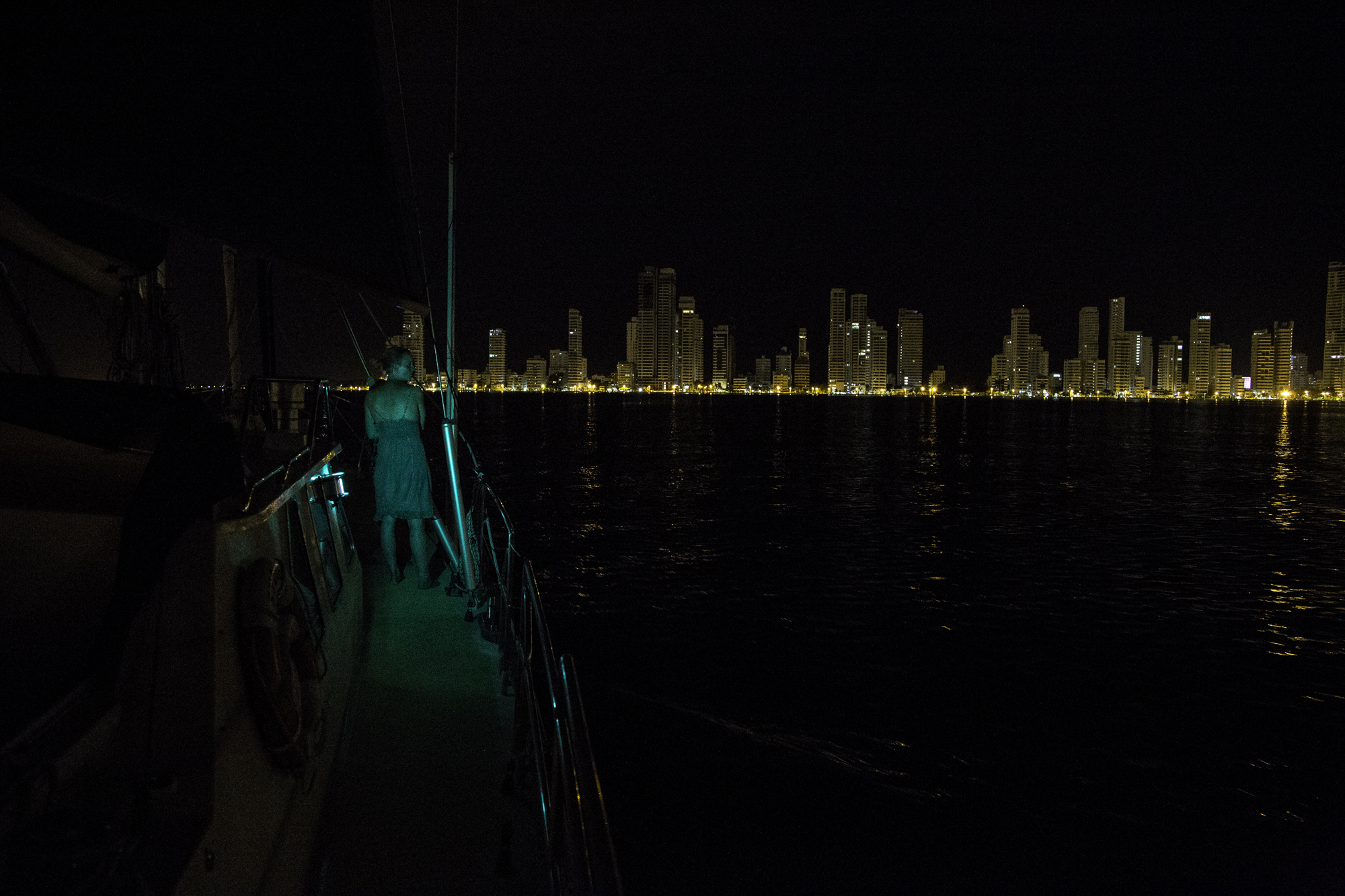 After we have settled in we meet the others on the afterdeck while the cook cooks up a nice meal. The captain takes a nap and at about 11pm we lift anchor and motor out of the Cartagena Bay listening to Jimmy Buffet. We did not have to do any of the border formalities, an advantage of doing a trip like this is that the captain goes to immigration and gets your exit and entry stamps. We are expecting a calm crossing, the sea between here and Panama can be quite rough, but not at this time of year. Patrick, who is prone to sea sickness, is happy to hear that. Still he takes a Dramamine before we leave. After enjoying our exit from Cartagena and having a cold beer we head below for our bunks.