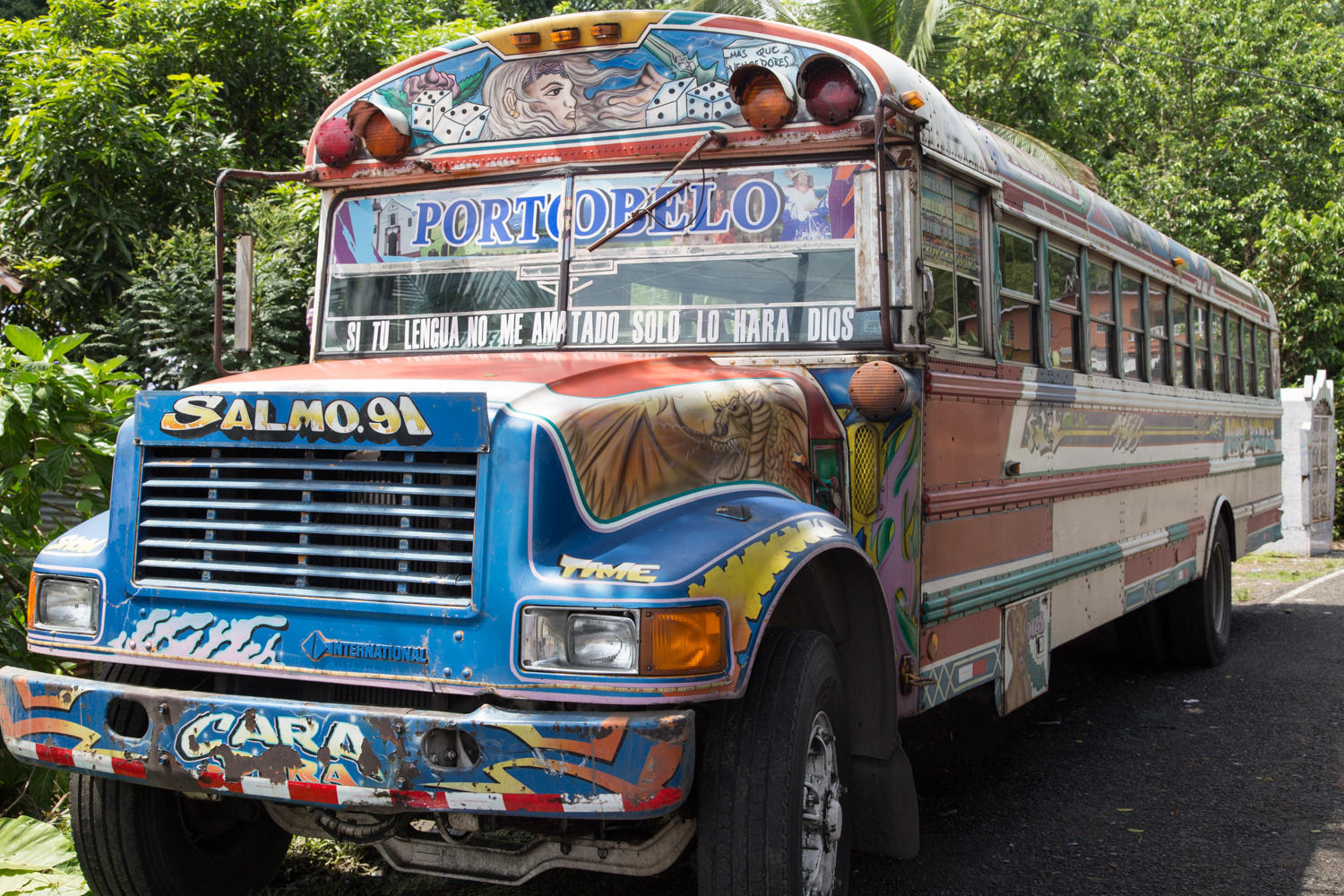 At six Patrick gets on deck, we are anchored in a narrow inlet with the town of Portobelo in front of us. We have arrived in Panama! Portobelo means “pretty harbor” and it is indeed very pretty here when seen from the water. The town and its fort are somewhat interesting, but the accommodation in town seems expensive with the only budget option not getting very good reviews. After reading Jeff and Roz’s journal , we have decided to try and head straight on to Panama City today by bus and start cycling again from there.