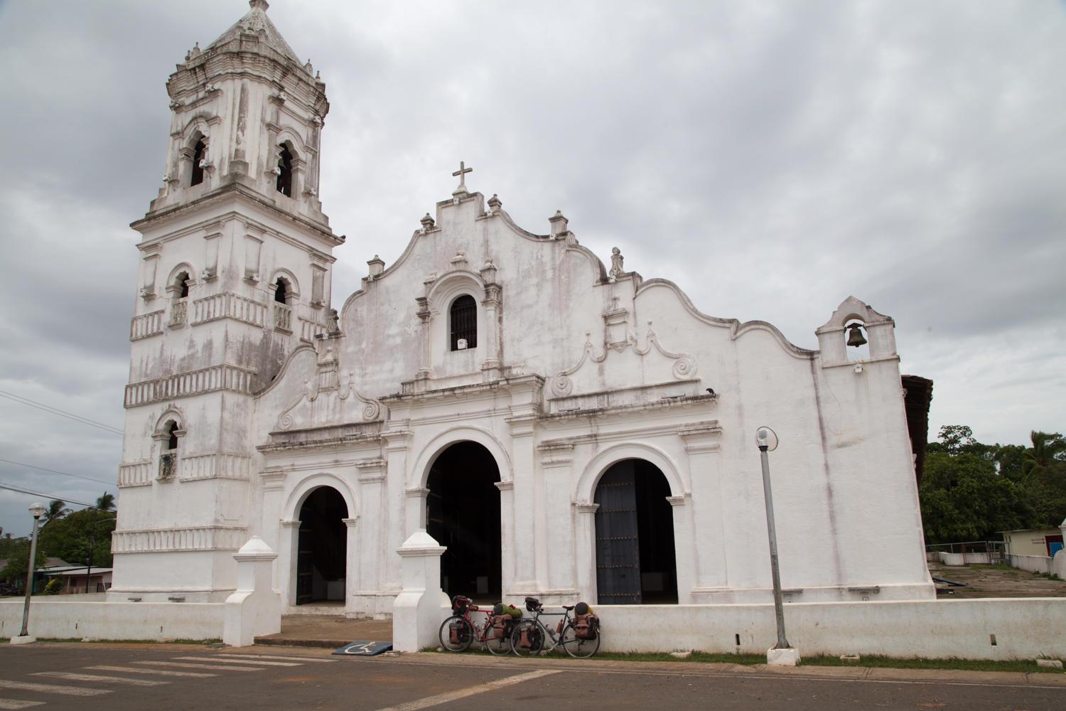 The road undulates in the beginning, the shoulder is hit-and miss, sometimes good, then terrible with lots of trash and blown truck tires. Then the shoulder improves, we make good time and get to our original destination of Nata early. We see the David hotel we were aiming for but decide to go check-out the church first. The Iglesia de Natá de los Caballeros. It is one of the oldest churches in the Americas with construction started in 1520.