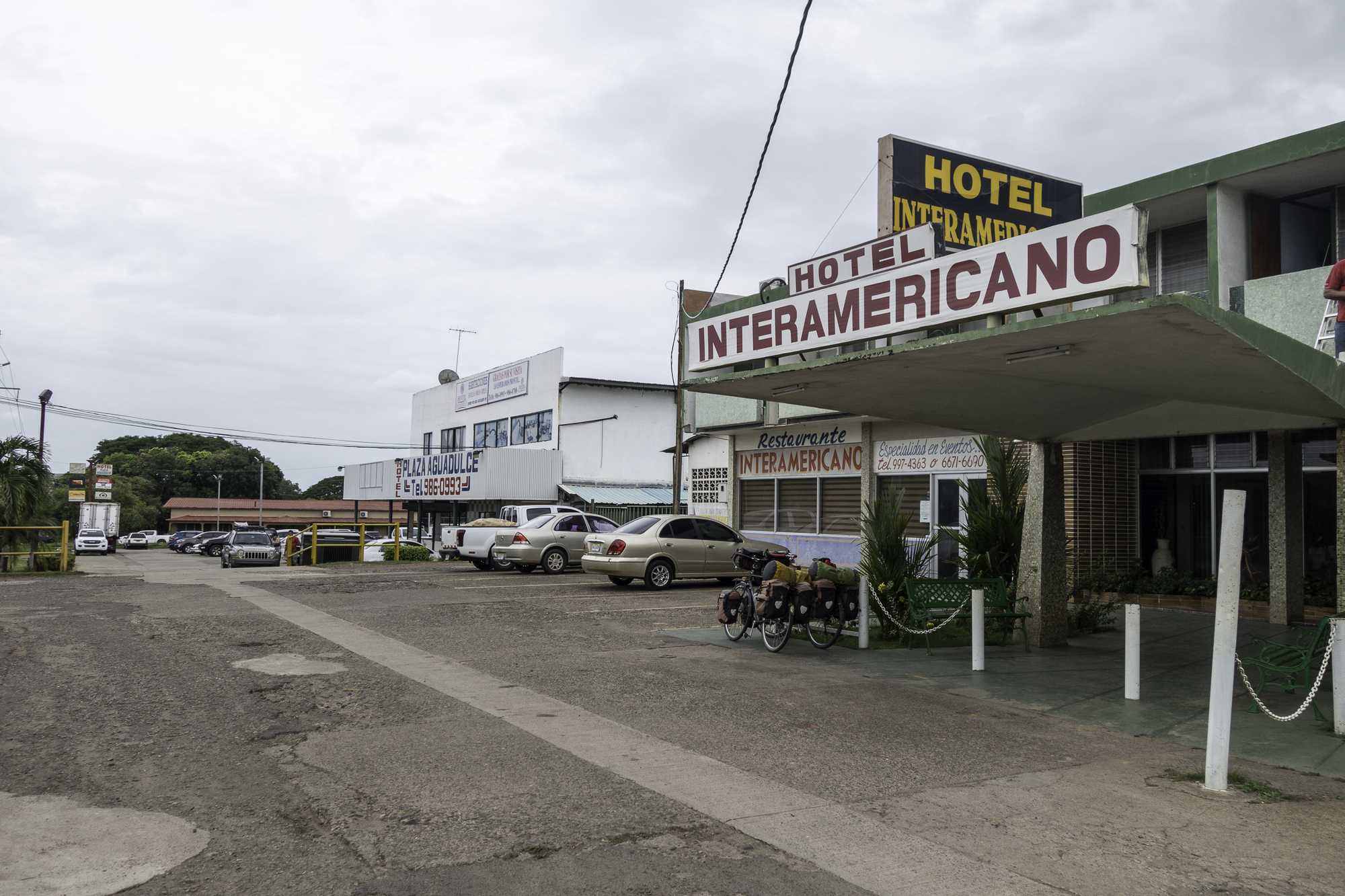 We decide to ride on a bit further to Aguadulce. The hotel choice there is better, but the Hotel Interamericano is a bit expensive, and the Plaza Aguadulce next door does not seem very bike friendly. They don't even want to show us a room because it is "too small for our bikes", and there is no space anywhere else for them in the hotel. We get the message and go back to Interamericano, at $44 for a AC room overpriced, but there is a hot water, TV and a pool!