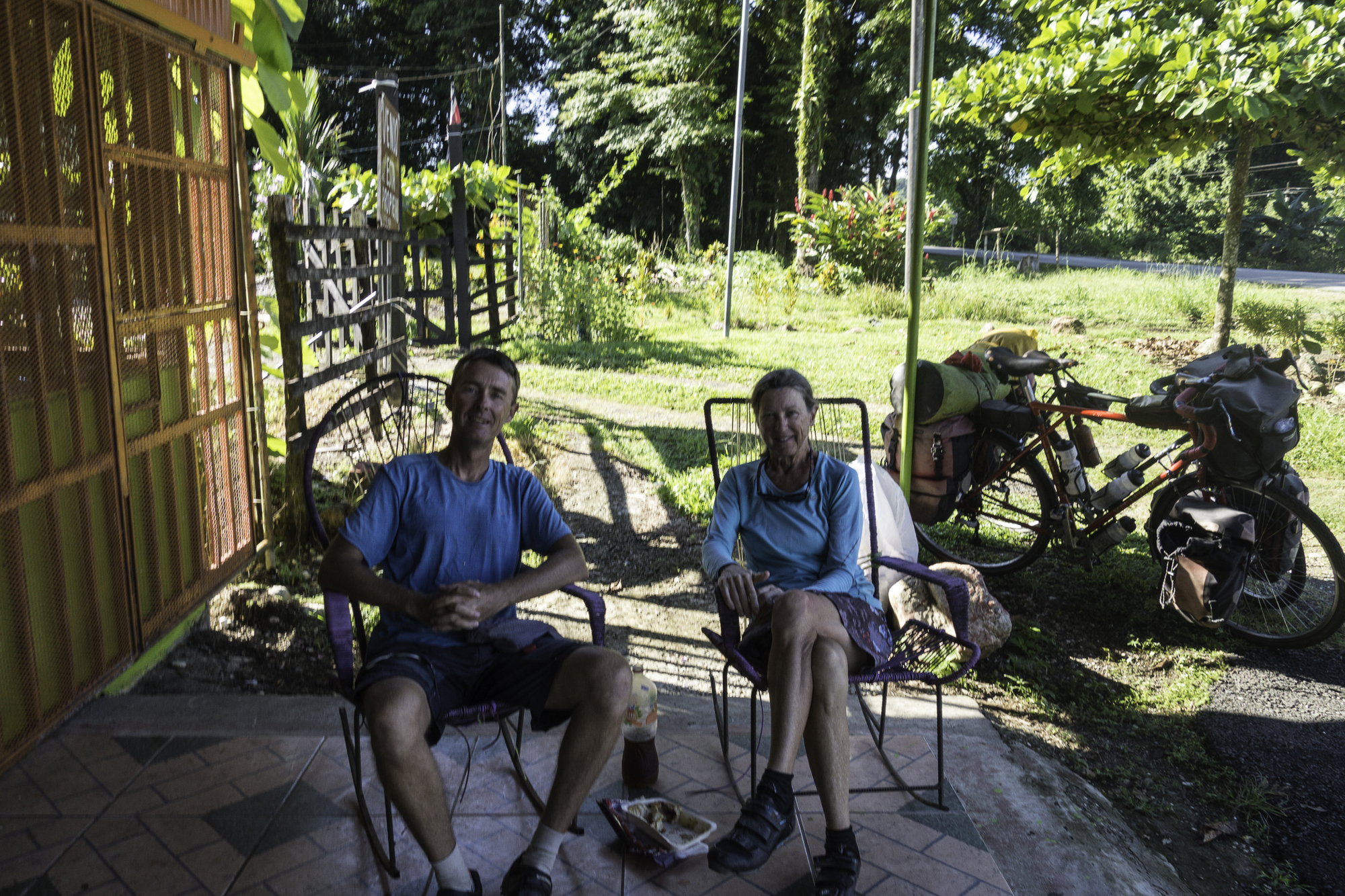 The road between Neily and Palmar Norte stays narrow with no shoulder, but traffic is courteous in Costa Rica. We get several thumbs-up from other cyclist and schoolkids that shout greetings. Very different from Panama. In our last Panama entry we might have sounded negative about that country, but that does not mean it should not be part of a bike trip. On longer trips it is not about stringing together an endless list of nice destinations. We try to travel through a country and see its pretty side, but also take-in the ugly part to get the full impression of the country. In the end most of the time the pretty outweighs the ugly. Sometimes one or two amazing things make a country, sometimes one ugly occurrence taints the whole experience. We think what tainted Panama for us was the unfriendliness of its people. But can we blame them for not liking gringos? Noriega died on the last day of our visit, the history of this dictator might explain the attitude. Either way, we are glad we went to Panama, but we probably won't be back.