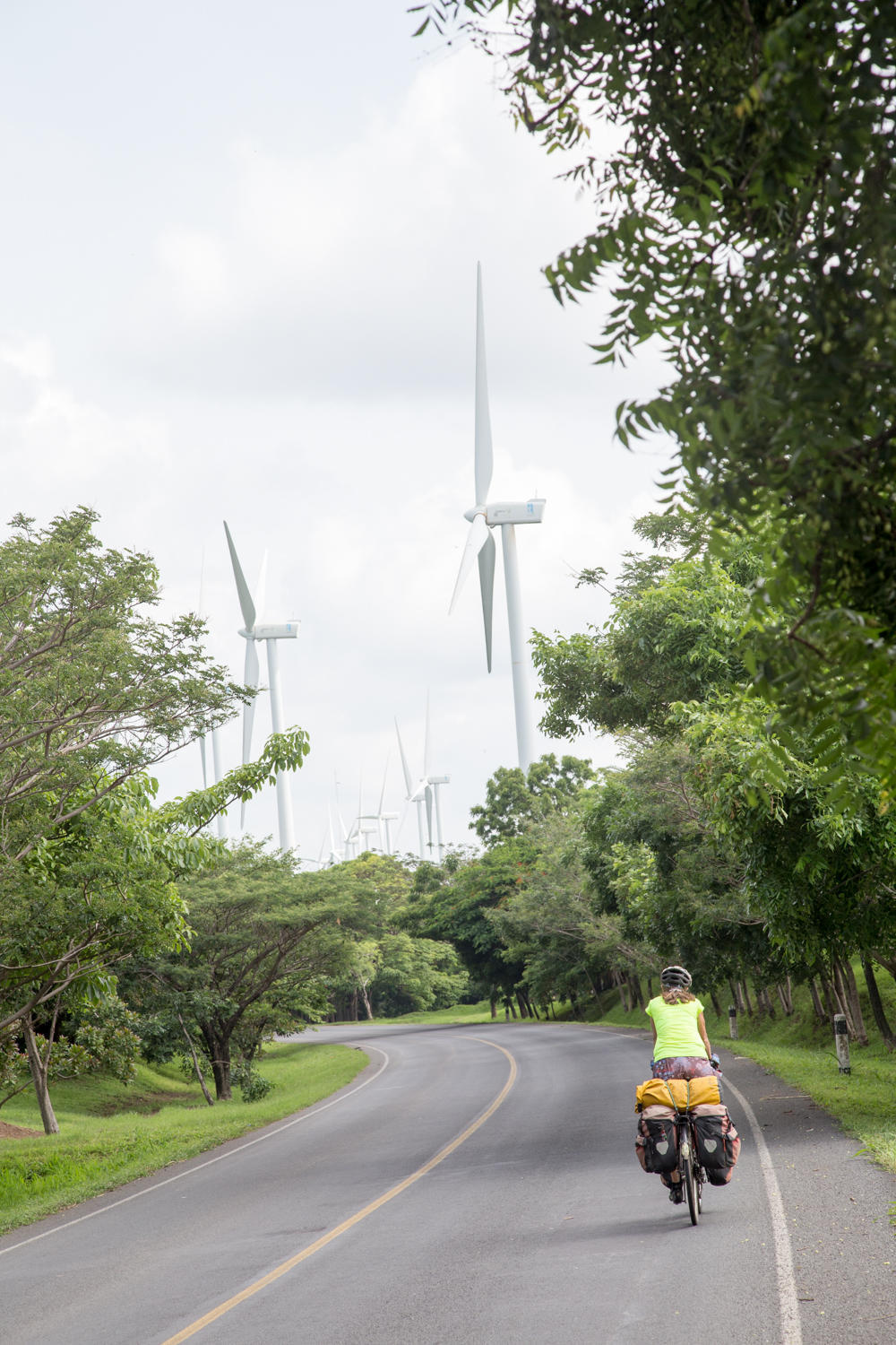 We are in Nicaragua. There are two more passport checks, one after about 500 meters, the other after about ten kilometers. People are friendly and even though the road only has a narrow shoulder, the riding is pleasant. The security guard at the last check gives information about Nicaragua more like a tourist guide. We get our first views of Lake Nicaragua and the Ometepe Island with its two volcanoes. Other than at the border there is not any shops along the way.