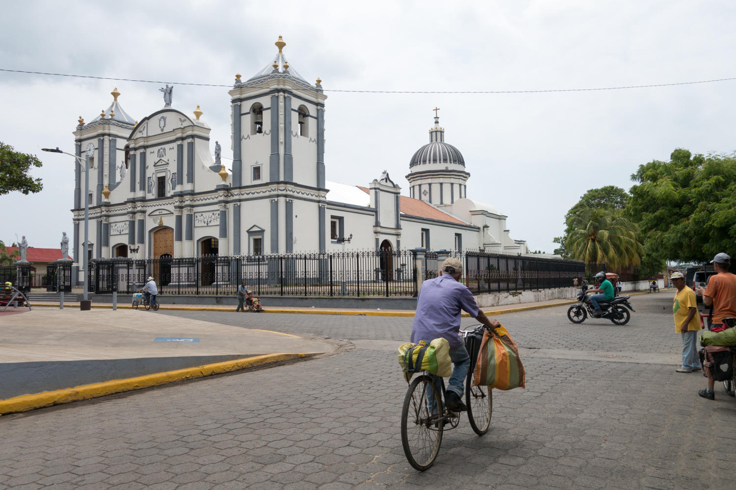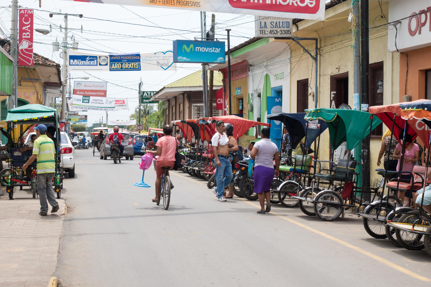 We ride to Rivas and head into town to find a room. The first hotel we try is closed down, the second way too expensive. The next one does not have rooms ready yet: come back in an hour..... We regroup with a cold drink and chocolate cake at a bakery and decide to ride to the lake shore. There are more hotels there and the views to Ometepe Island might be worth it.