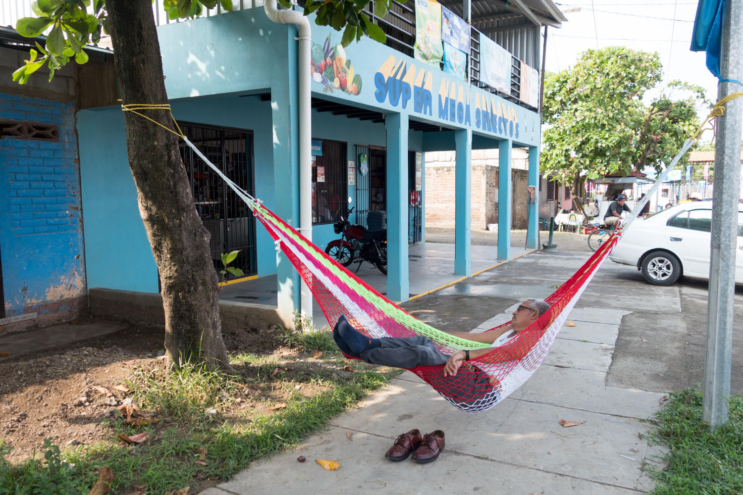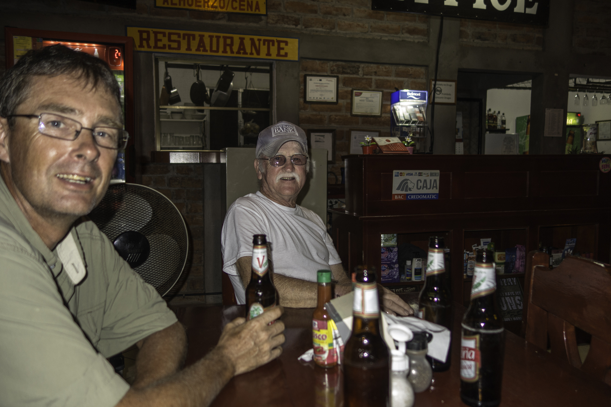 The evening meal is a great American style hamburger. The smell even reminded Rachel of the drive-in burgers she grew up with. Ronny, the American owner was having his own dinner and joined us for awhile with him telling us stories. He was a bull-rider then a horse jockey and has lived in Central America for a long time. He tells the stories with an Arkansas twang, is silver haired with a silver mustache. One poignant story he relates is a conversation with one of his staff how he grew up poor in the midwest. She responded with "you had 40 acres of land, a house, water, a cow, goats and chickens and you think you were poor?"