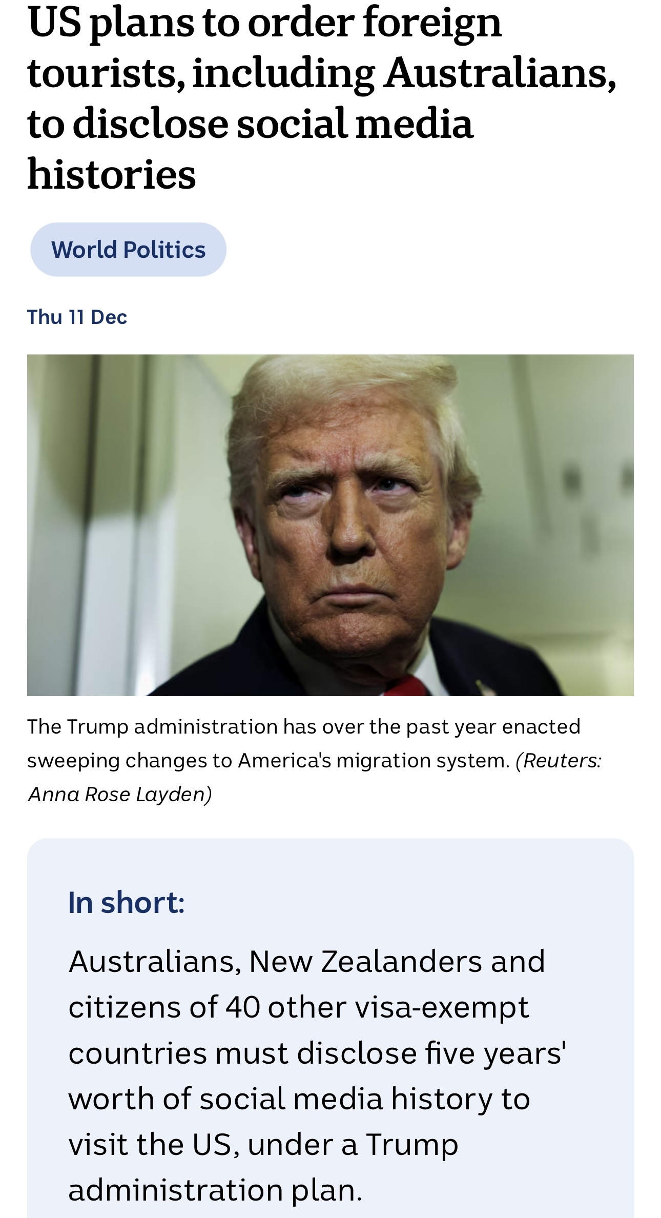 Andrea the latest news about proposed new entry requirements to the USA for tourists, even those from countries like Australia, isn’t looking encouraging.